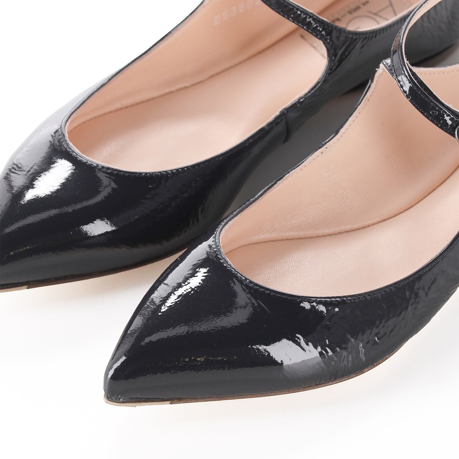 Dieser Ballerina ist die perfekte Verbindung aus modischer Eleganz und unvergleichlichem Tragegefühl. Gefertigt aus edlem dunkelblauen Lammlackleder, besticht das Modell durch seine glänzende Optik und die moderne, spitze Form. Das besondere Highlight sind die feinen, dünnen Riemchen, die dem Schuh eine filigrane und zeitgemäße Note verleihen.