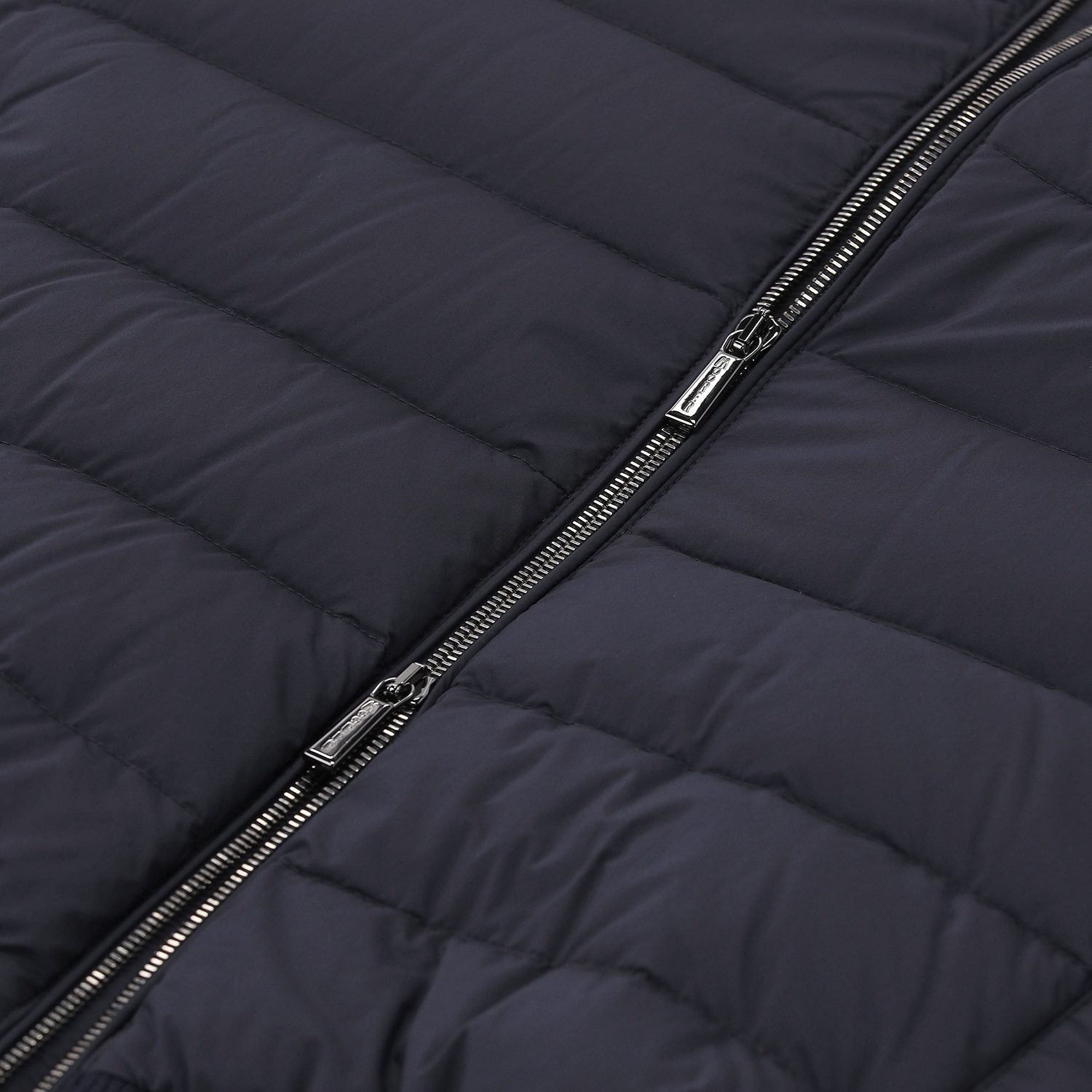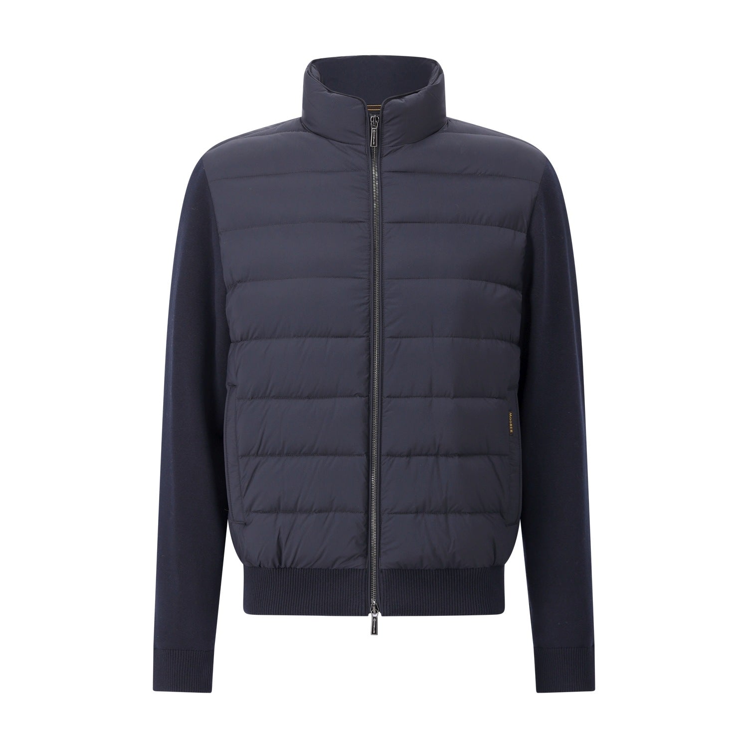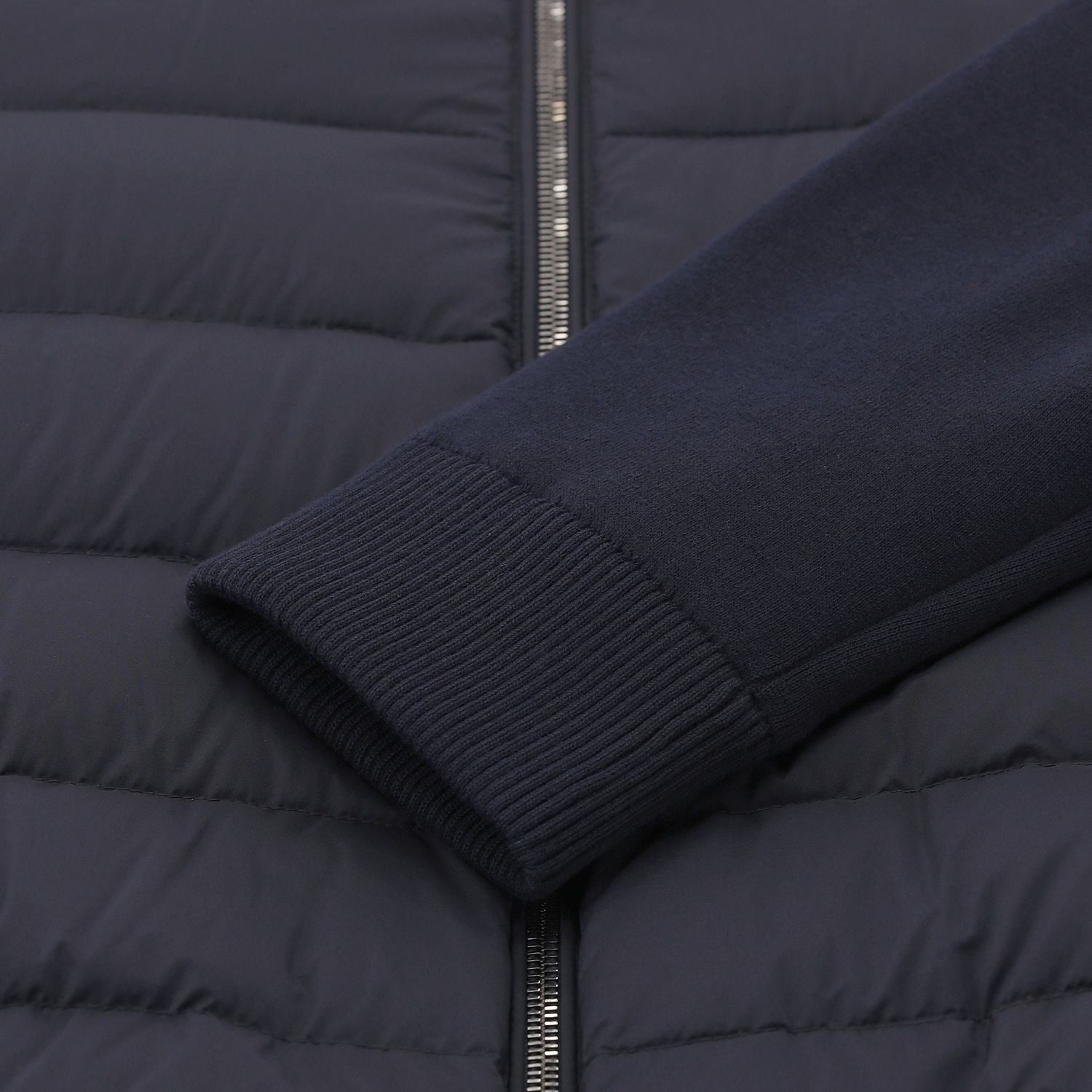 Diese luxuriöse hybride Bomberjacke vereint Hightech-Funktionalität mit edler Handwerkskunst: Gefüllt mit wärmender Gänsedaune und im Boudin-Stil abgesteppt, überzeugt sie durch außergewöhnliche Leichtigkeit und Isolation. Das daunendichte, matte Funktionsgewebe trifft auf eine feine Mischung aus Wolle, Seide und Kaschmir, die Komfort und Eleganz perfekt vereint. Ein Frontverschluss aus gebürstetem Metall mit Doppelschieber, praktische Reißverschluss-Seitentaschen sowie gestrickte Abschlüsse an Saum und Ärmeln unterstreichen das hochwertige Design, ergänzt durch bequeme Innentaschen für Wertsachen. Made in Italy.