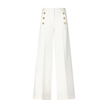 Diese Marlenehose bietet eine normale Leibhöhe und ein gerades, weites Bein für eine elegante Silhouette. Sie schließt mit einem Knopf und Reißverschluss und ist mit Bügelfalten versehen, die den klassischen Look unterstreichen. Goldfarbene Schmuckknöpfe und paspelierte Gesäßtaschen setzen stilvolle Akzente. Der elastische, leichte Stoff sorgt für hohen Tragekomfort und Bewegungsfreiheit.