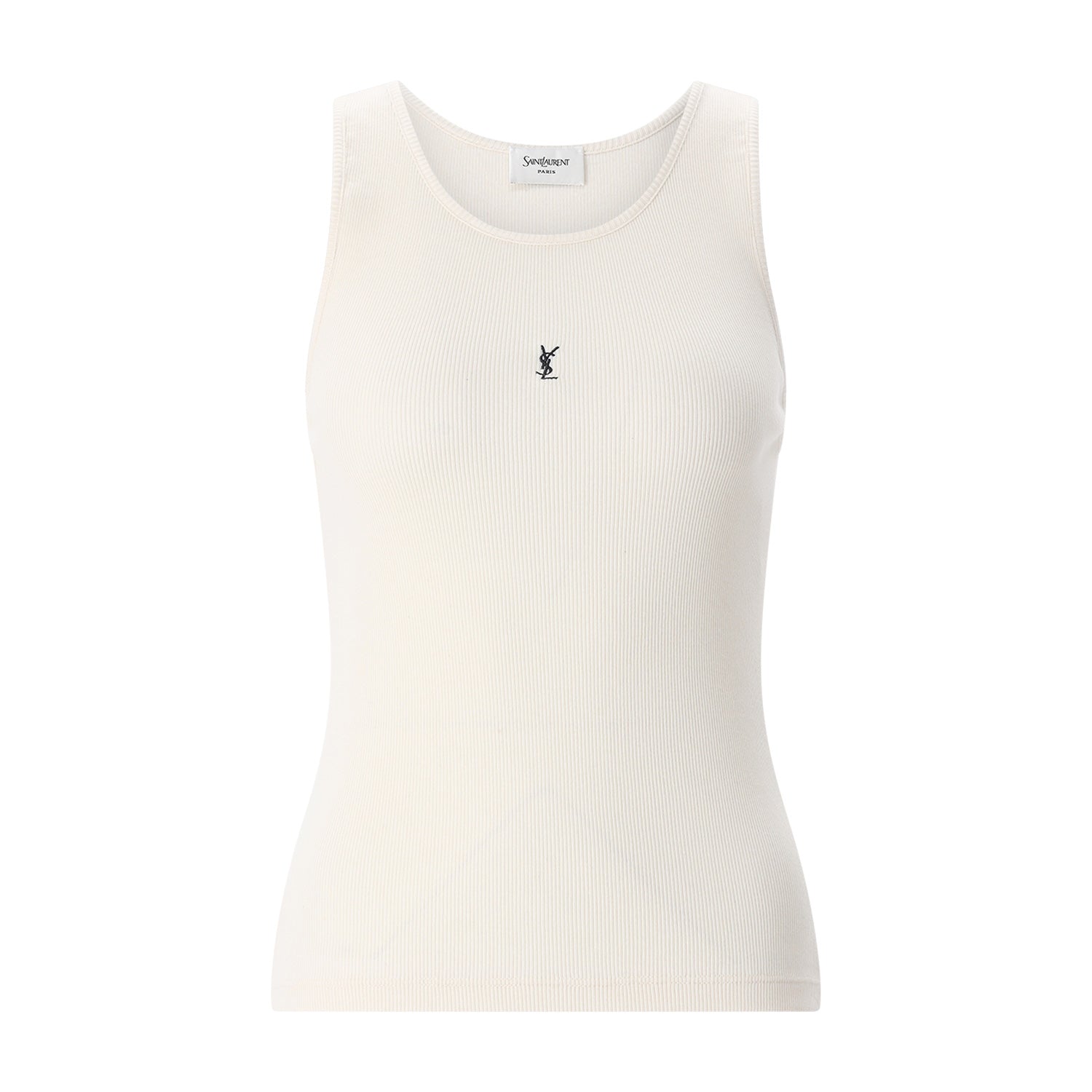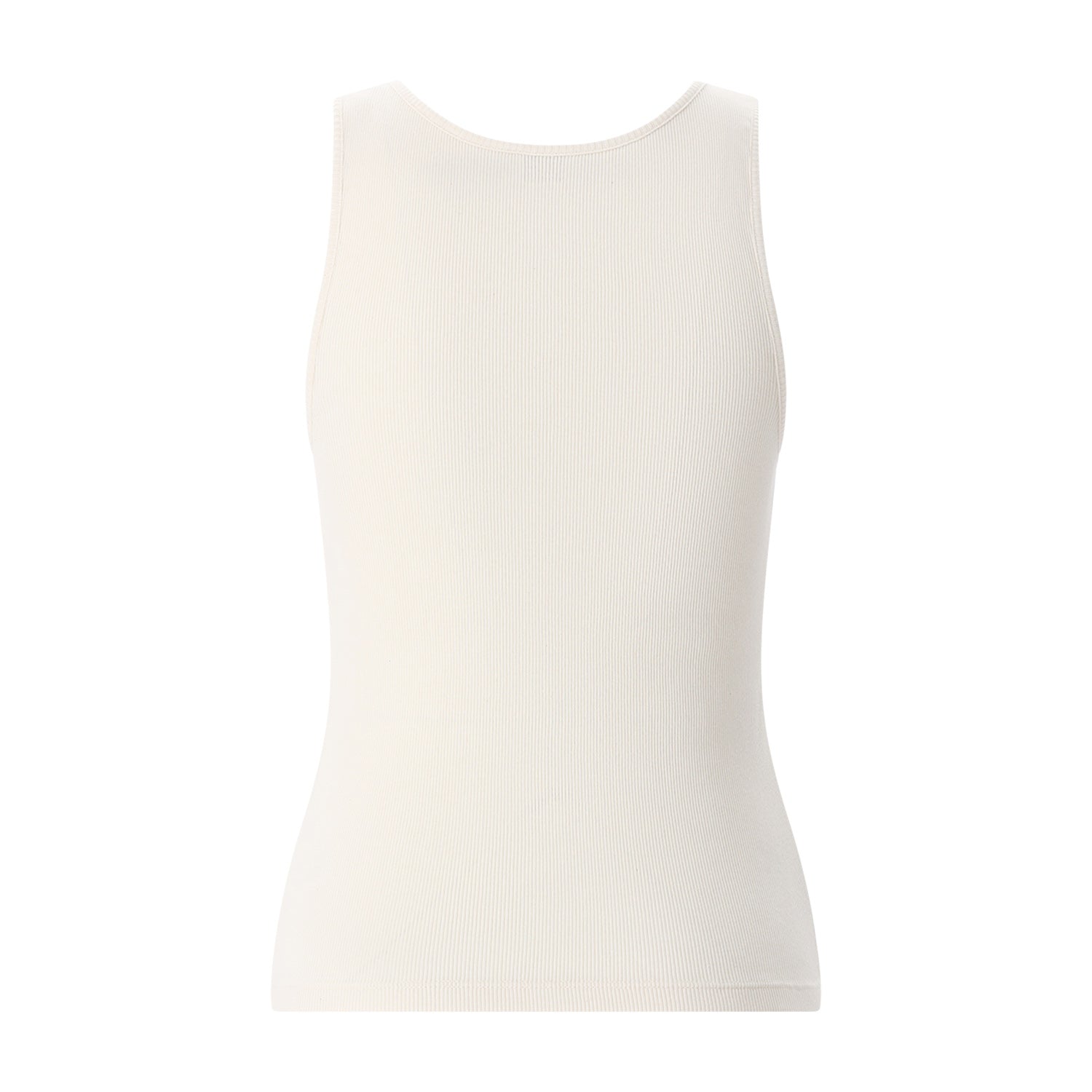 Dieses in Italien gefertigte Top aus reiner Baumwolle zeichnet sich durch seine feine Rippstrick-Struktur aus, die für eine präzise Passform und ein besonders angenehmes Tragegefühl sorgt. Ein zentral platziertes Logo-Detail setzt einen dezenten Akzent und vervollständigt das minimalistische Design.