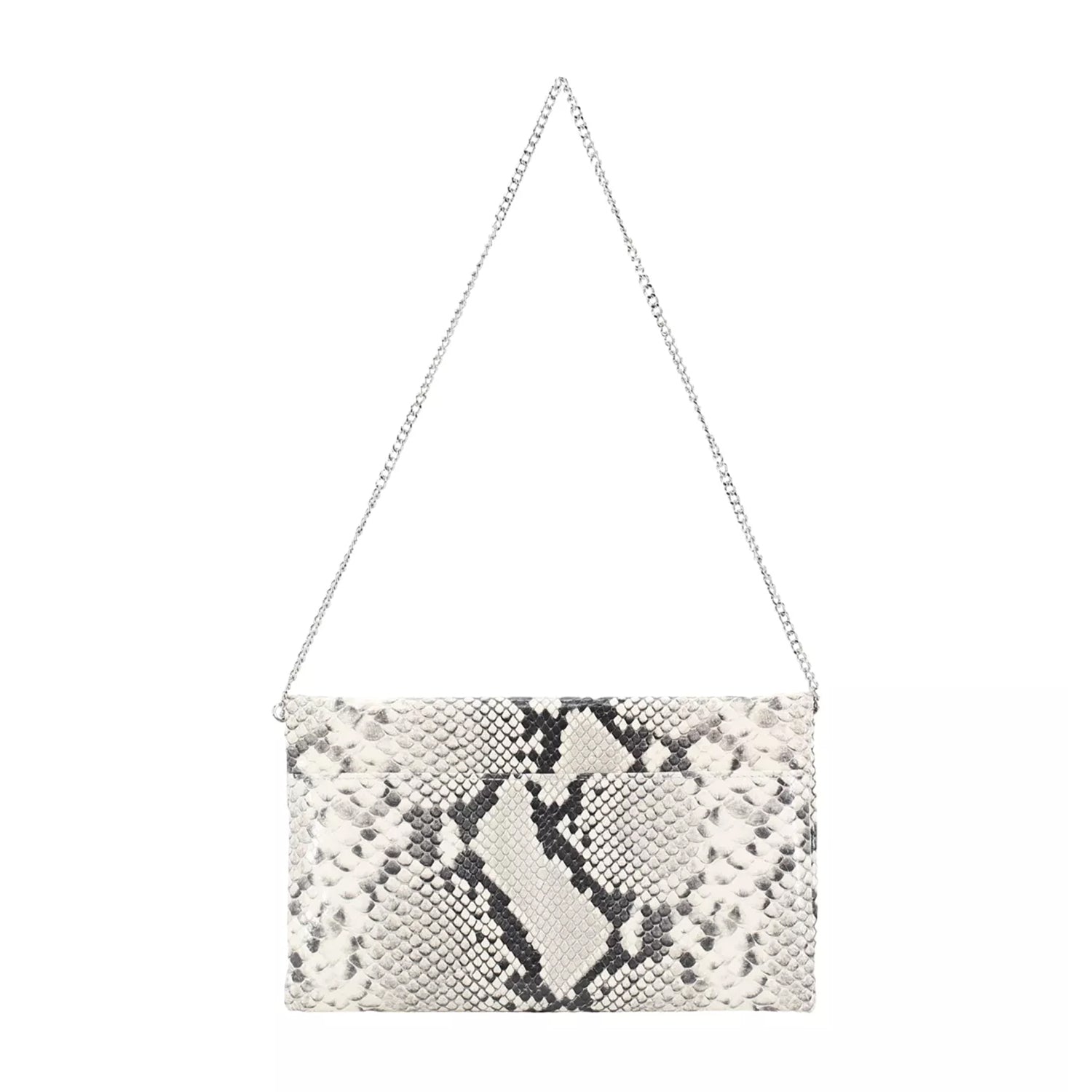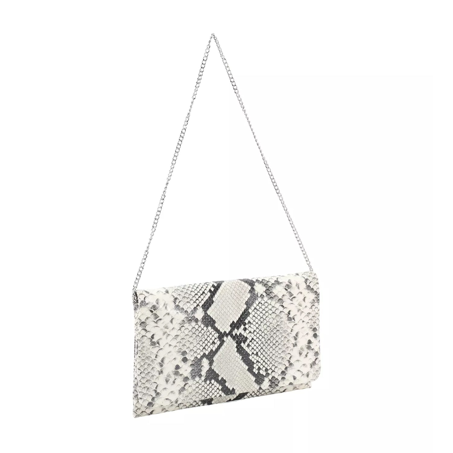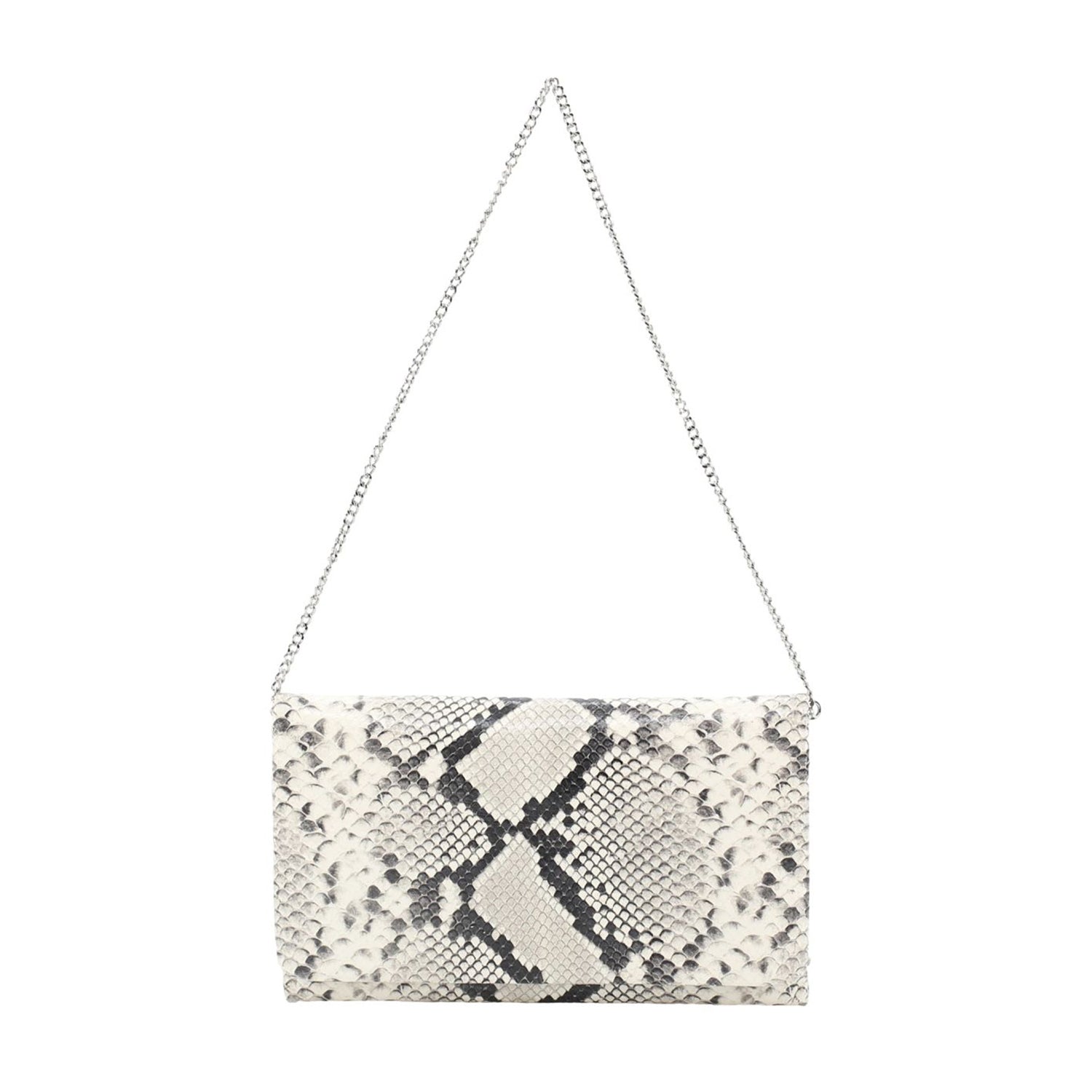 Setzen Sie ein modisches Statement mit dieser Clutch im aufregenden Animal-Look. Das auffällige Design trifft hier auf maximale Funktionalität: Während der praktische Magnetverschluss für ein unkompliziertes Handling sorgt, bietet die interne Reißverschlusstasche sicheren Platz für Ihre wichtigsten Kleinigkeiten. Besonders flexibel zeigt sich das Accessoire durch den abnehmbaren Schulterriemen im Kettenstil: Tragen Sie die Tasche lässig über der Schulter oder als elegante Clutch in der Hand.