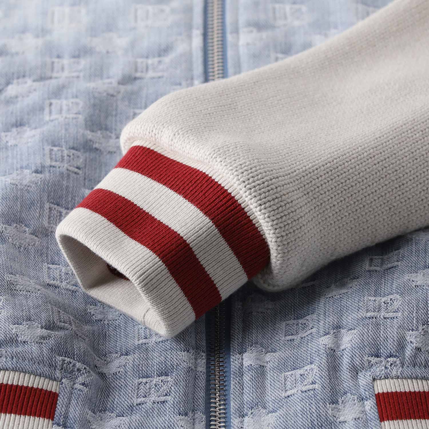Diese Jacke definiert, durch ihre einzigartige Kombination aus hochwertigen Materialien, den Urban-Style neu. Während die Vorderseite aus authentischem Denim für eine robuste Optik sorgt, bieten die Ärmel aus weichem Strick einen außergewöhnlichen Tragekomfort und optimale Bewegungsfreiheit. Die praktischen Seitentaschen mit Reißverschluss verstauen Ihre Essentials sicher und unterstreichen das funktionale Design. Ein moderner Hybrid, der die Lässigkeit einer College Jacke mit dem Charakter einer Jeansjacke verbindet.
