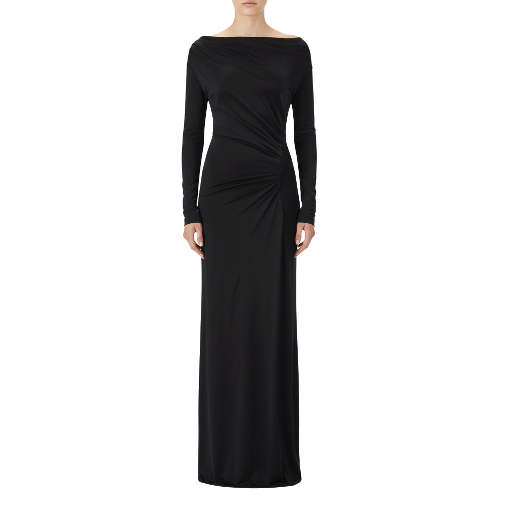 Das figurbetonte Maxikleid von Victoria Beckham besticht durch einen eleganten Ausschnitt mit feinen Raffungen, die für feminine Akzente sorgen. Gefertigt aus sanfter, glänzender Viskose umschmeichelt es die Silhouette und verleiht jedem Auftritt eine edle Leichtigkeit – ein stilvolles Must-have für besondere Anlässe.