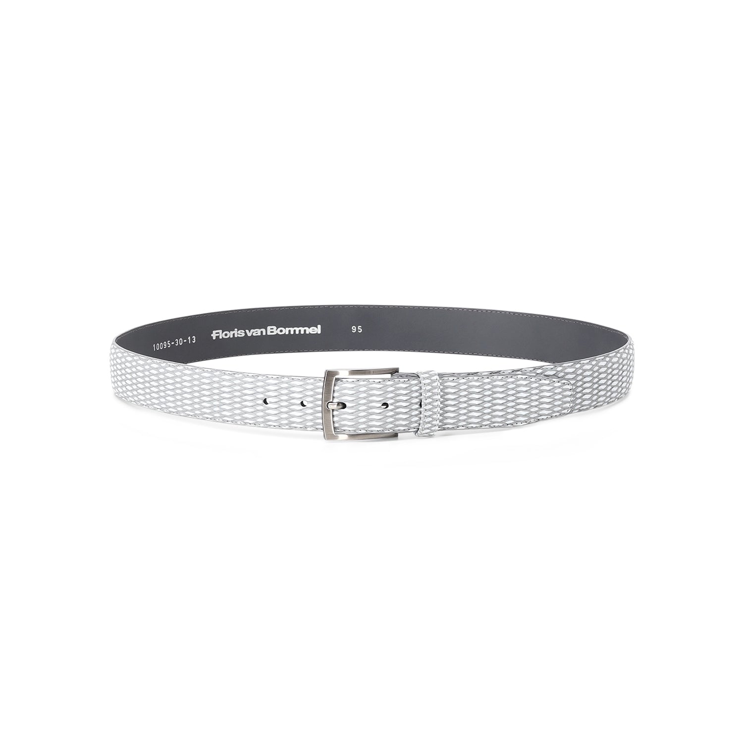 Dieser Gürtel besticht durch sein markantes Design und eine hochwertige Verarbeitung aus Leder mit Print. Der Gürtel hat eine klassische Breite und zeigt eine strukturierte Oberflächenoptik. Er verfügt über eine robuste Metallschnalle mit Dorn sowie die für Floris van Bommel typische versteckte Schraubverbindung, die ein einfaches Kürzen auf die individuelle Wunschlänge ermöglicht.