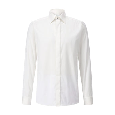 Dieses Twillhemd im Slim-Fit aus Bio-Baumwolle vereint Eleganz und Nachhaltigkeit für besondere Anlässe. Die zeitlose, gut proportionierte Kragenform passt perfekt zu einer Fliege, kann aber auch ohne Accessoire getragen werden. Mit verdeckter Knopfleiste, französischen Manschetten und knitterresistentem Gewebe ist es die ideale Wahl für stilvolle Black-Tie-Looks oder elegante, weniger formelle Auftritte.