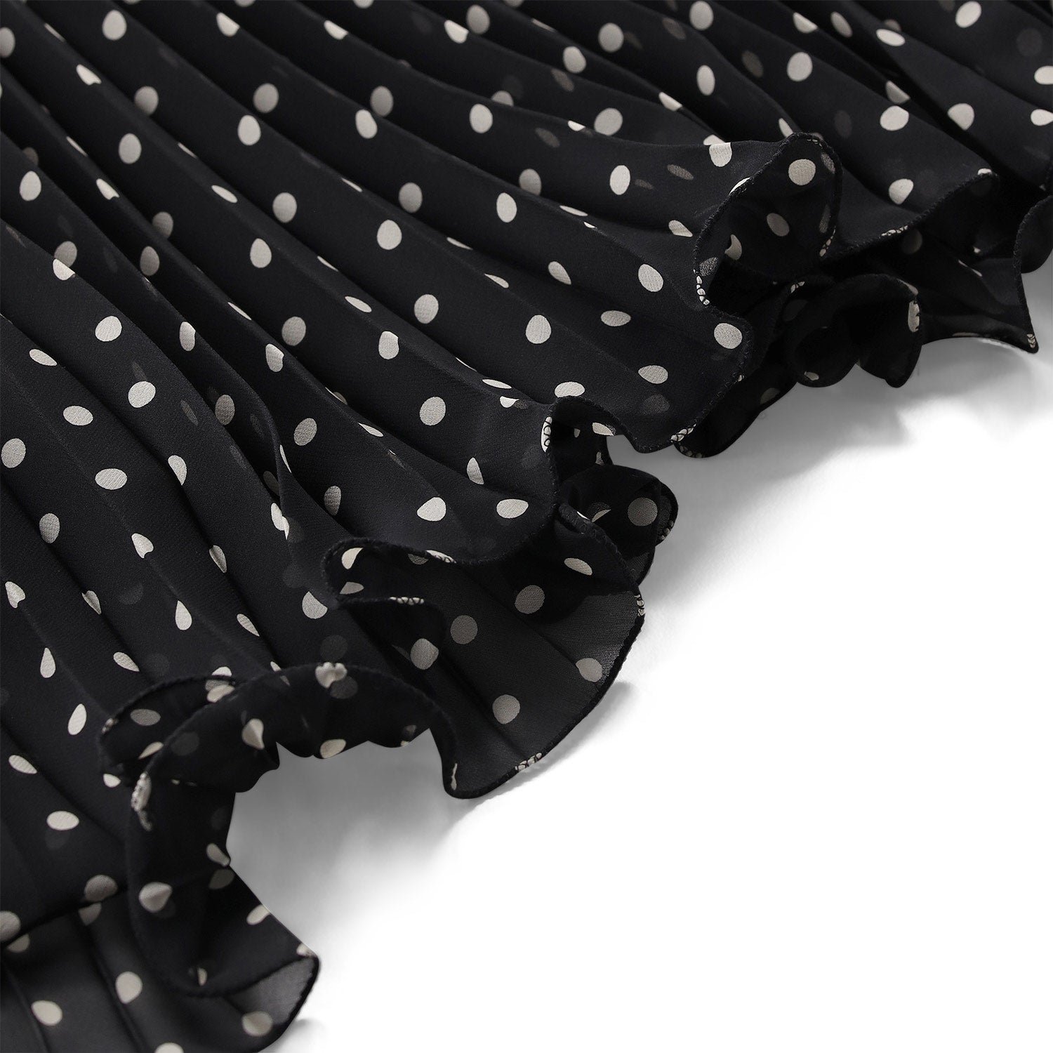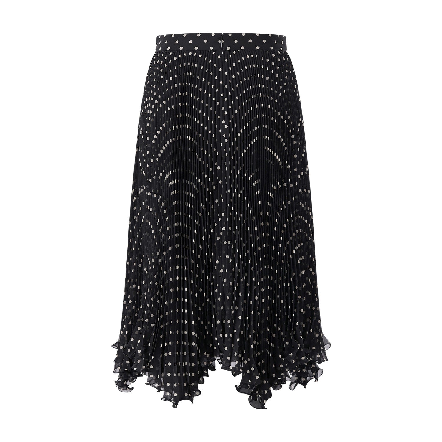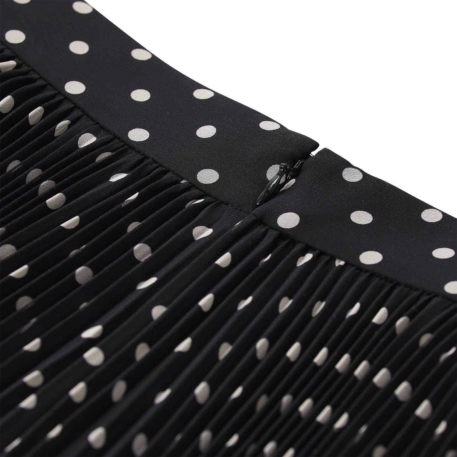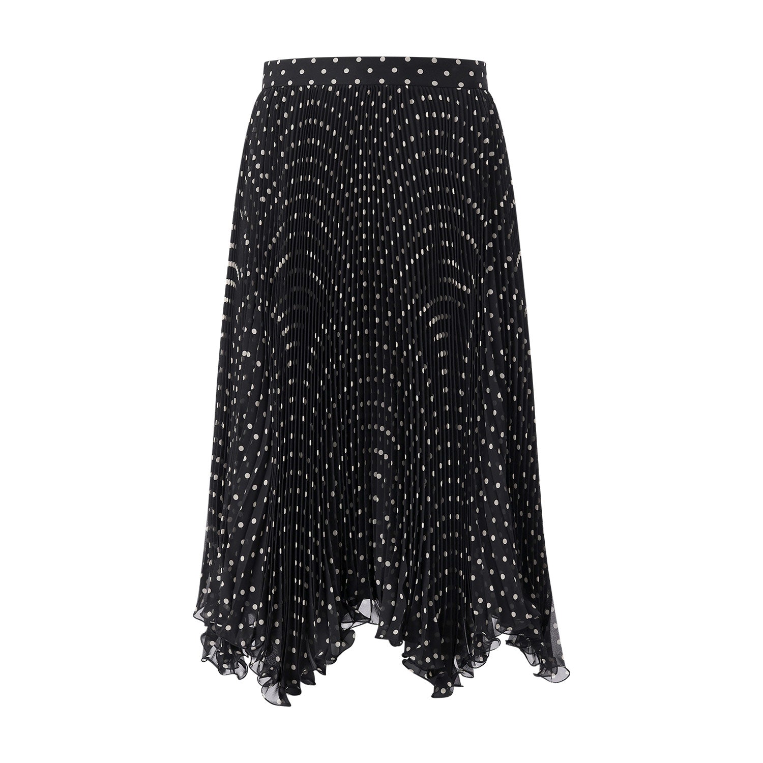 Dieser Rock aus reiner Seide besticht durch seine feine Plissee-Struktur, die bei jedem Schritt für eine fließende Dynamik sorgt. Das zeitlose Punkte-Muster verleiht dem edlen Material eine verspielte und zugleich souveräne Note. Die Kombination aus der luxuriösen Haptik der Seide und der präzisen Faltenlegung macht diesen Rock zu einem exklusiven Statement-Piece.