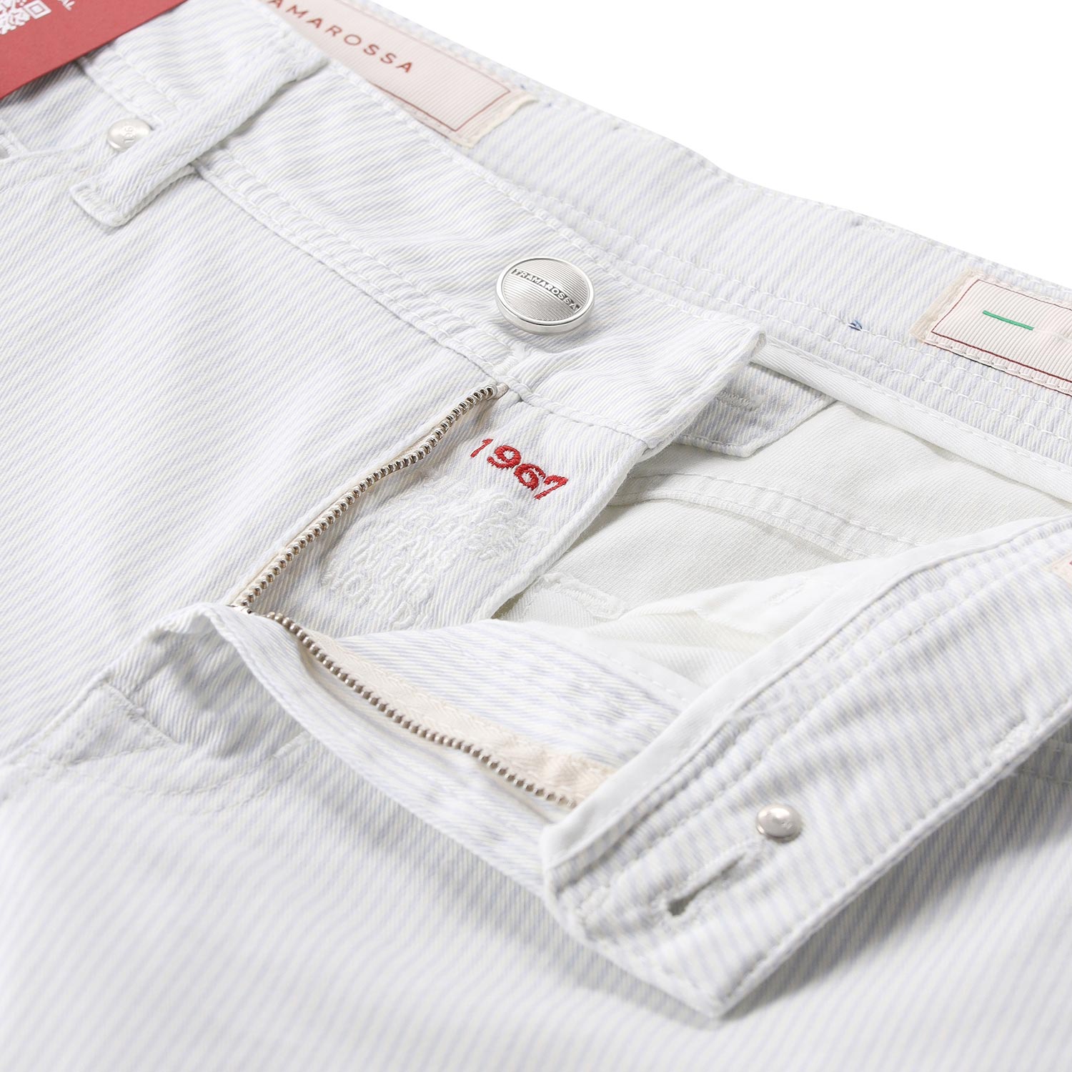 Diese gestreiften Shorts sind das perfekte Statement für den stilbewussten Sommer-Look. Gefertigt aus einem hochwertigen Baumwollmix, vereint sie erstklassige Formstabilität mit einem leichten, angenehmen Tragegefühl. Das klassische 5-Pocket-Design wird durch den markentypischen Ring an der vorderen Gürtelschlaufe und den edlen Logo-Knopf zum Blickfang. Dank des präzisen Reißverschlusses und der detailverliebten Verarbeitung aus Italien ist diese Shorts ein luxuriöser Allrounder.