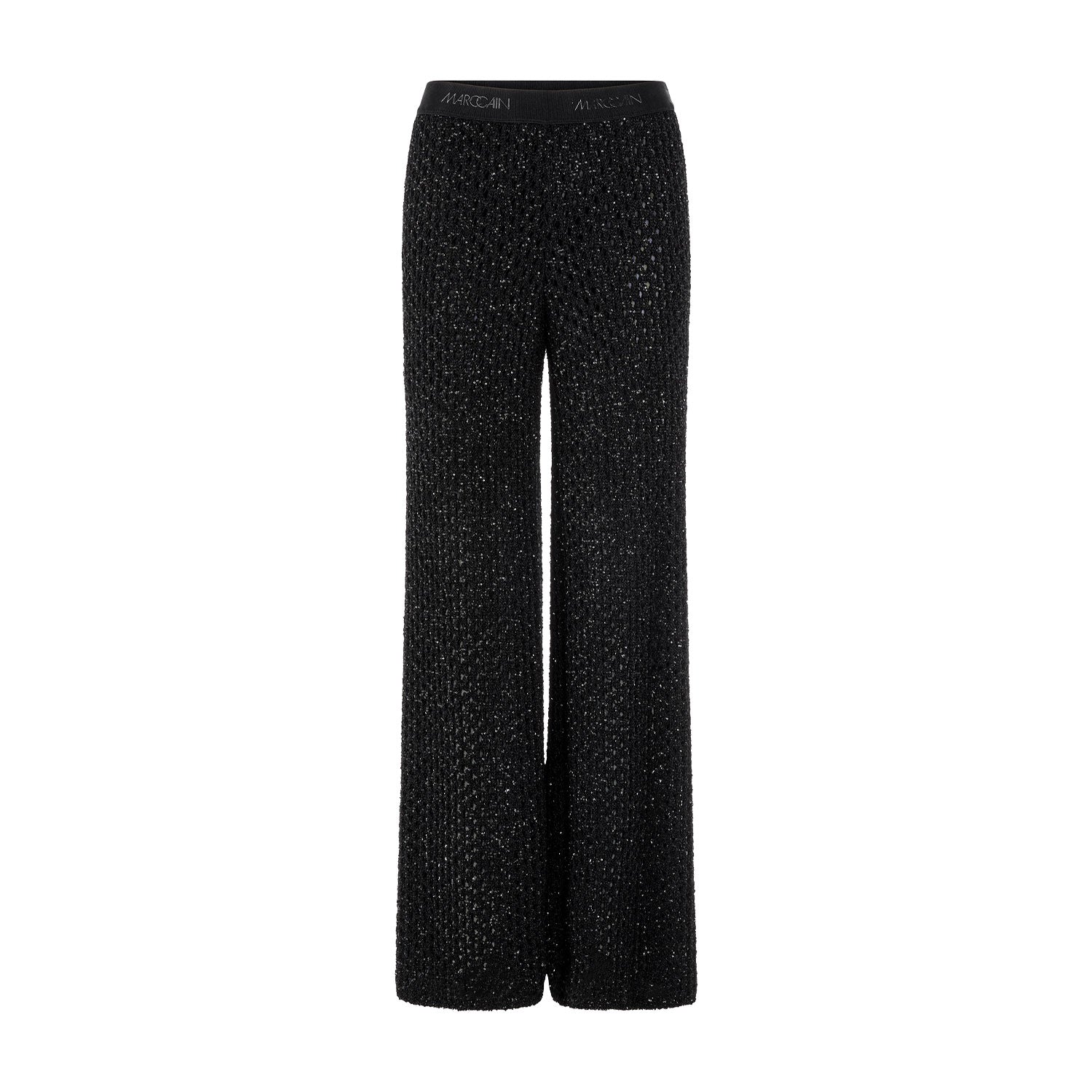 Die Strickhose vereint höchsten Tragekomfort mit einer exklusiven Optik. In modernem Wide Fit geschnitten und mit einem bequemen Gummibund ausgestattet, bietet sie maximale Bewegungsfreiheit bei perfektem Sitz. Das Highlight ist das doppellagige, durchbrochene Paillettengestrick, das Ihnen bei jeder Bewegung einen dezenten, edlen Glanz verleiht. Während die Außenseite für einen glanzvollen Auftritt sorgt, garantiert die weiche Innenseite in Kombination mit einer integrierten kurzen Futterhose ein angenehmes Gefühl auf der Haut.