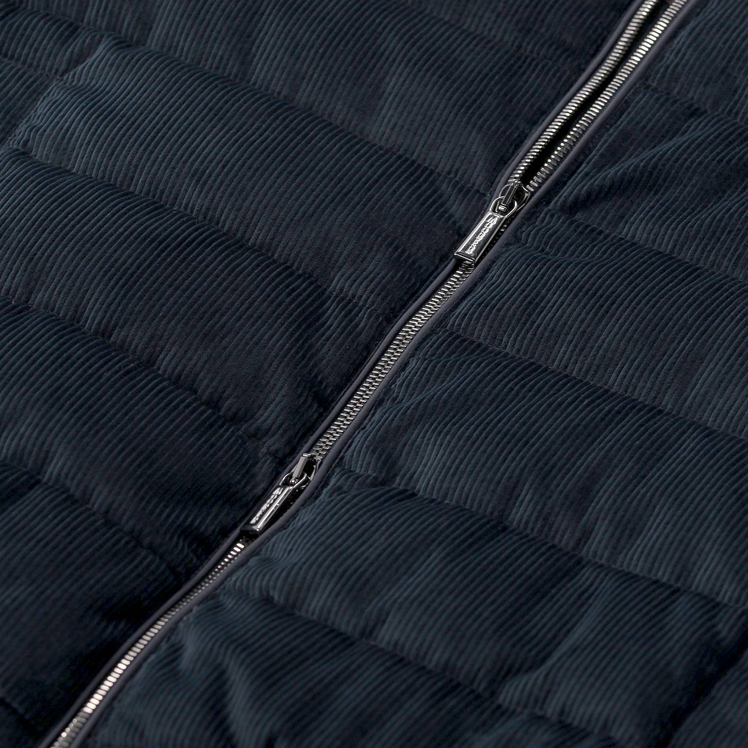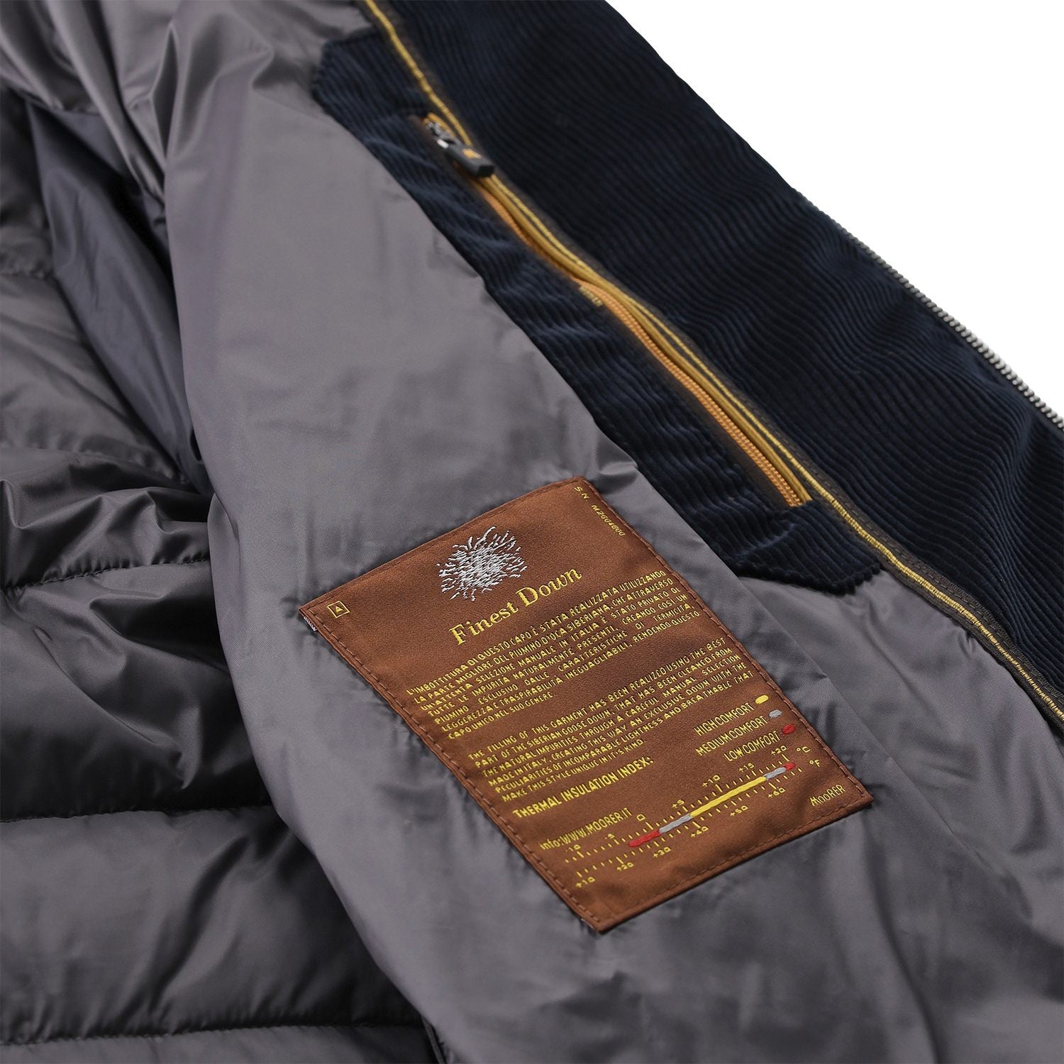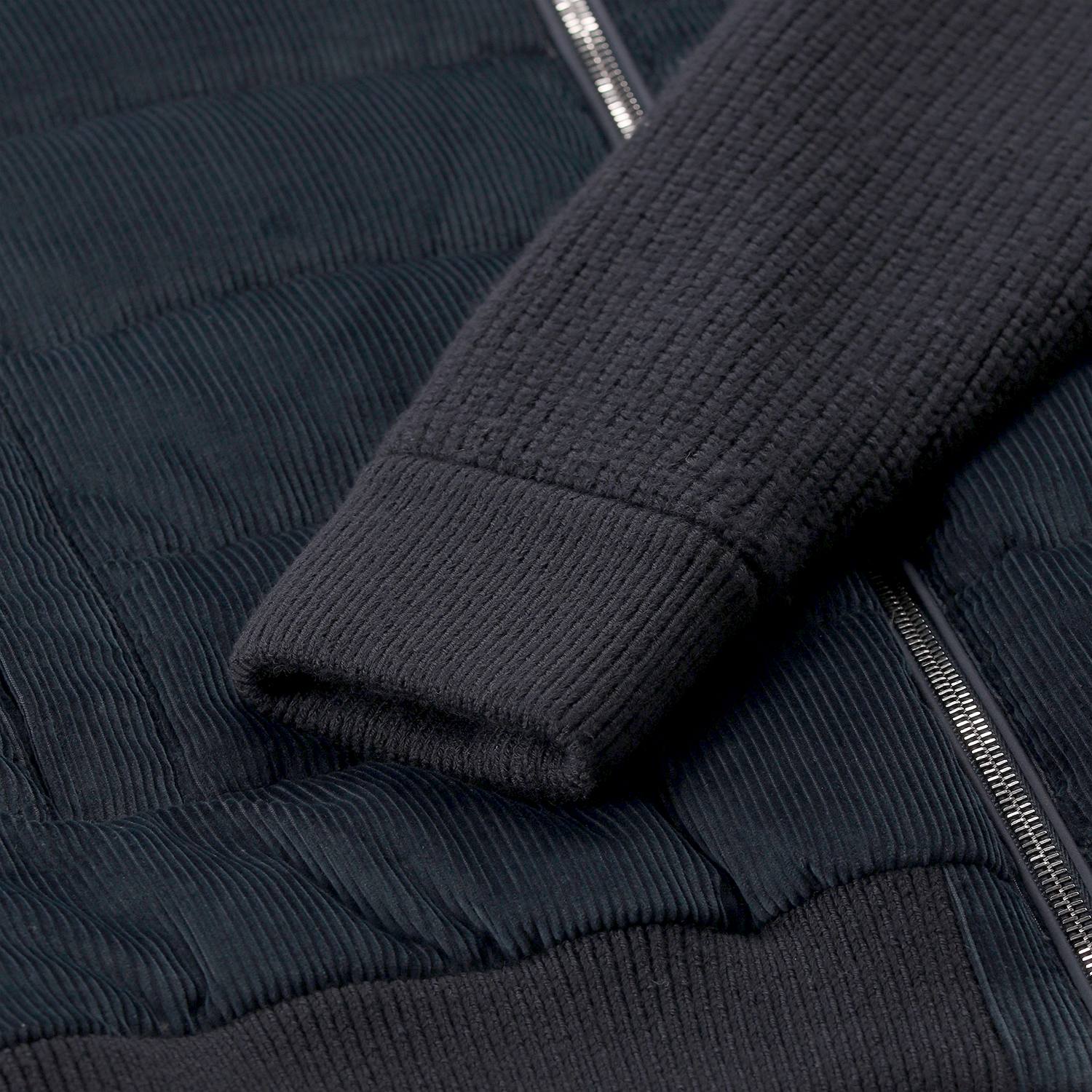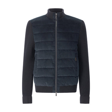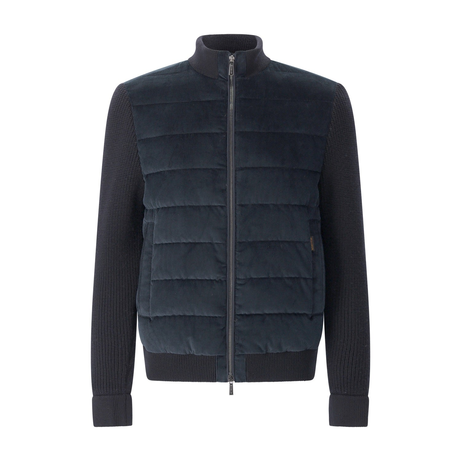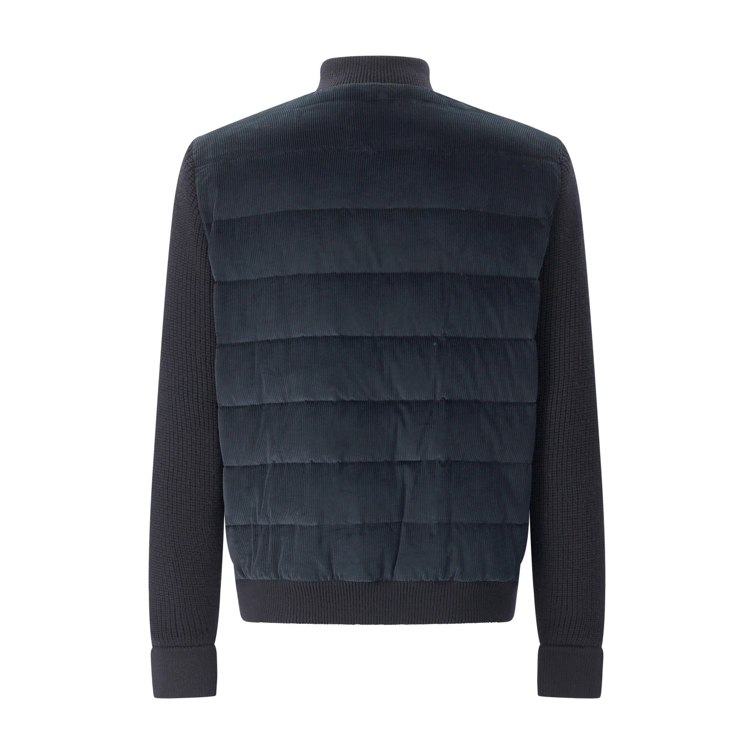 Diese exklusive Übergangsjacke vereint luxuriöse Materialien und durchdachtes Design: Ein edler Mix aus weichem Cord und feinem Strick aus Wolle und Kaschmir trifft auf eine wärmende Daunenfüllung. Seitentaschen mit Druckknöpfen bieten praktische Funktionalität, während die italienische Fertigung höchste Qualität und Stilbewusstsein garantiert.