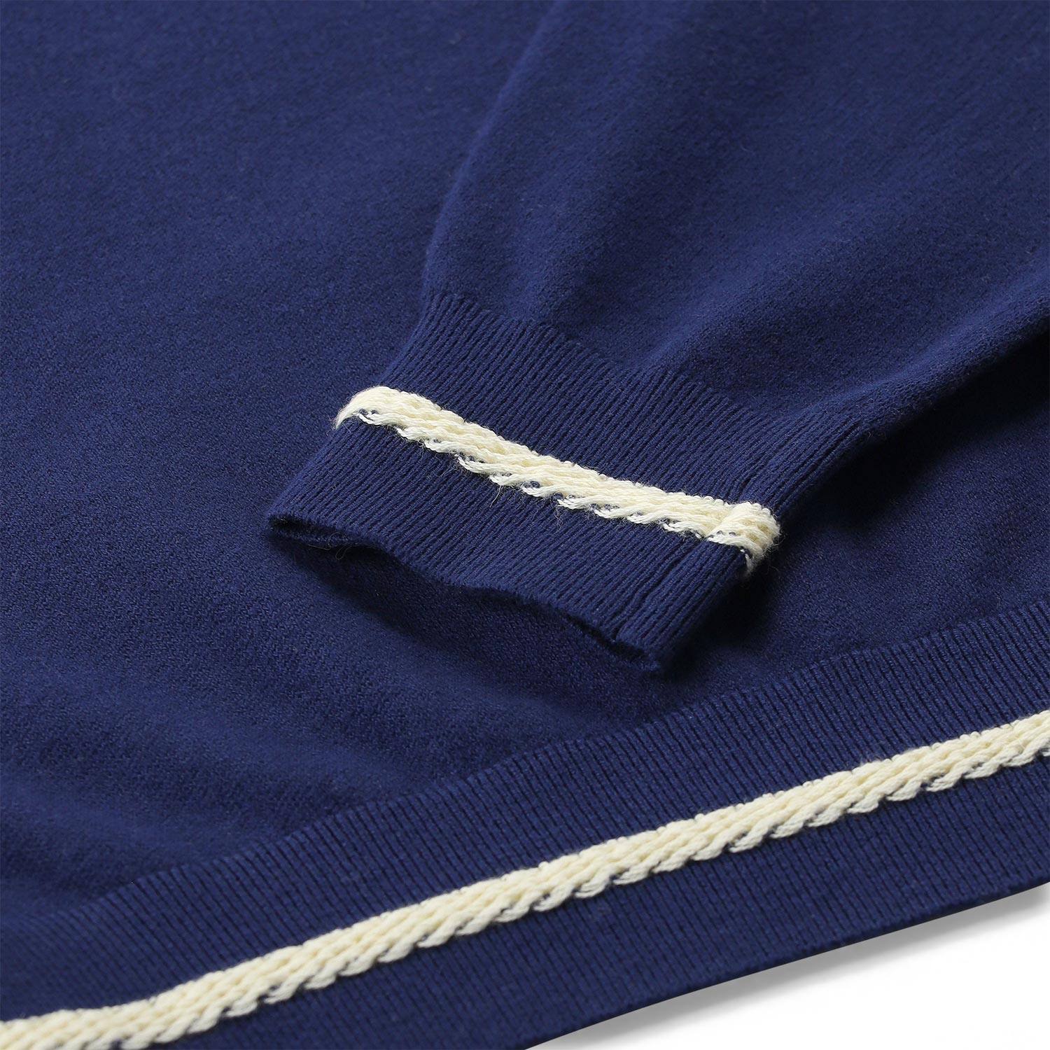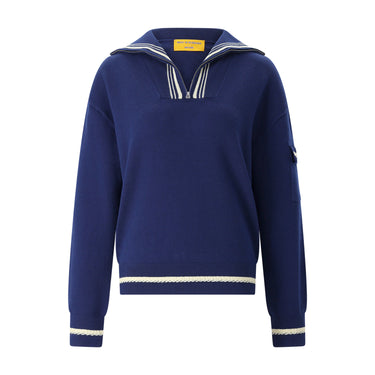 Dieser Troyer definiert sportliche Eleganz neu und ist der ideale Begleiter für den Alltag. Gefertigt aus einem hochwertigen Mix aus Baumwolle und Kaschmir, bietet dieser mittelschwere Jersey-Strick angenehme Wärme und ein luxuriöses Tragegefühl. Das Design überzeugt durch eine entspannte Passform mit überschnittenen Schultern und einem markanten Halb-Reißverschluss am Rollkragen. Besondere Akzente setzen die texturierten Streifendetails an den Rippbündchen sowie die funktionale Patch-Tasche am linken Ärmel, die dem Pullover eine moderne, nützliche Note verleiht.