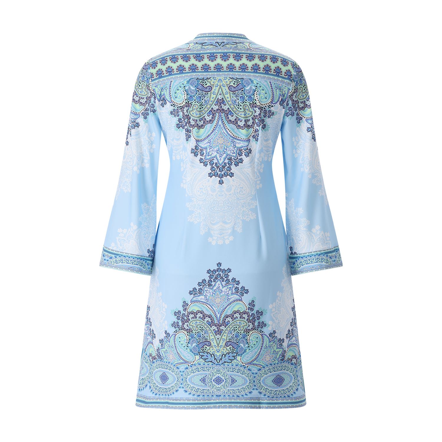 Dieses stilvolle Kleid besticht durch seine klare Linienführung und erstklassigen Tragekomfort. Das blickdichte Mesh-Innenfutter sorgt für eine perfekte Passform, während die Knopfleiste am Ausschnitt und die modischen 3/4 Ärmel dem Design eine feminine Dynamik verleihen. Praktische Eingrifftaschen und eine moderne Länge machen dieses Kleid zum idealen Begleiter.