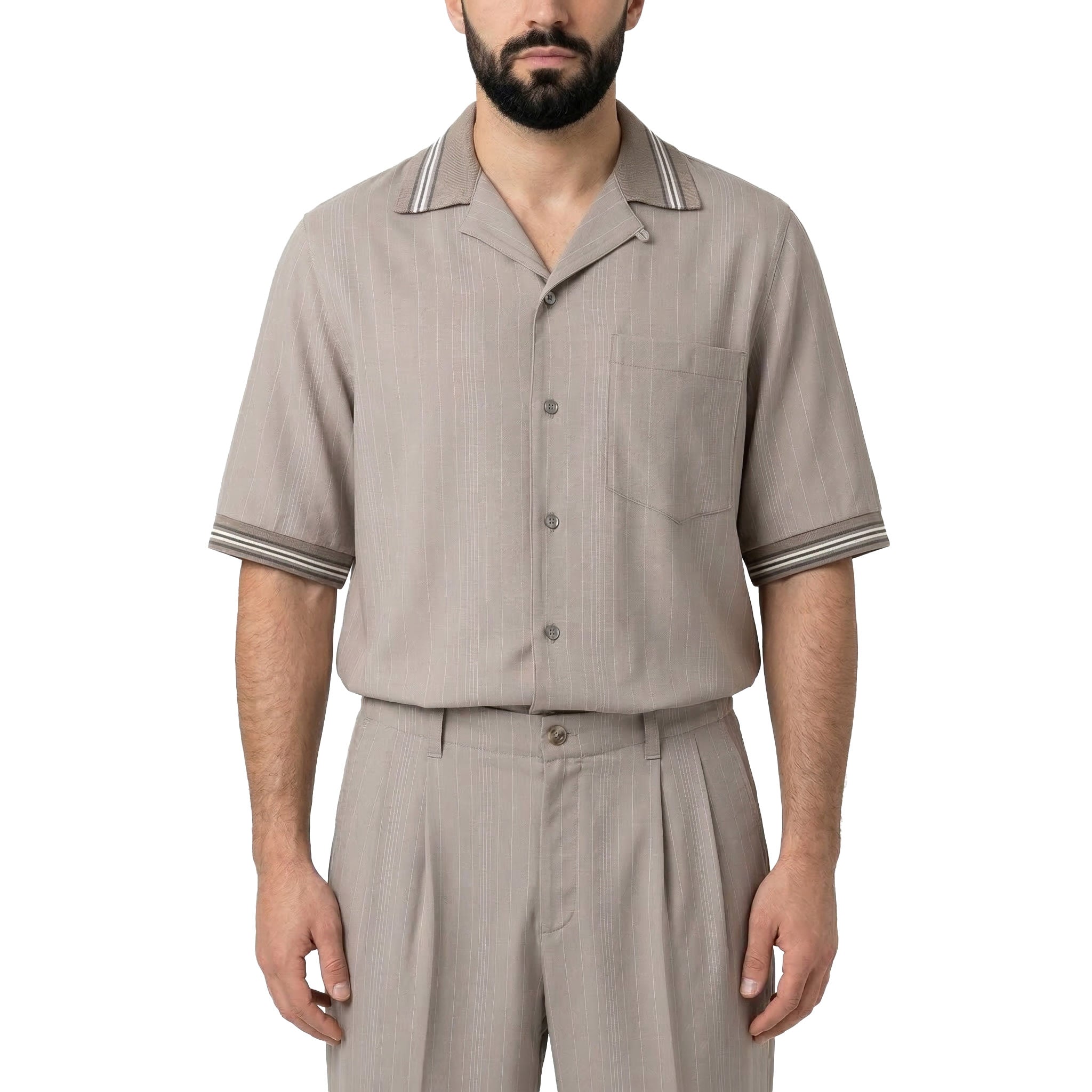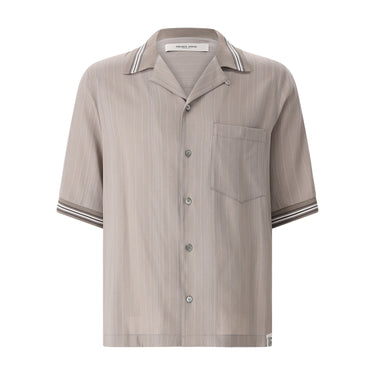 Dieses in Italien gefertigte Kurzarmhemd vereint kulturelle Inspiration mit moderner, urbaner Eleganz. Gefertigt aus einer luxuriösen Mischung aus leichter Schurwolle und Viskose, besticht das Modell durch ein feines Nadelstreifenmuster, das eine subtile Tiefe und eine besonders hochwertige Haptik erzeugt. Das Design im modernen Kastenschnitt wird durch einen entspannten Kubakragen und eine klassische aufgesetzte Fronttasche definiert.
