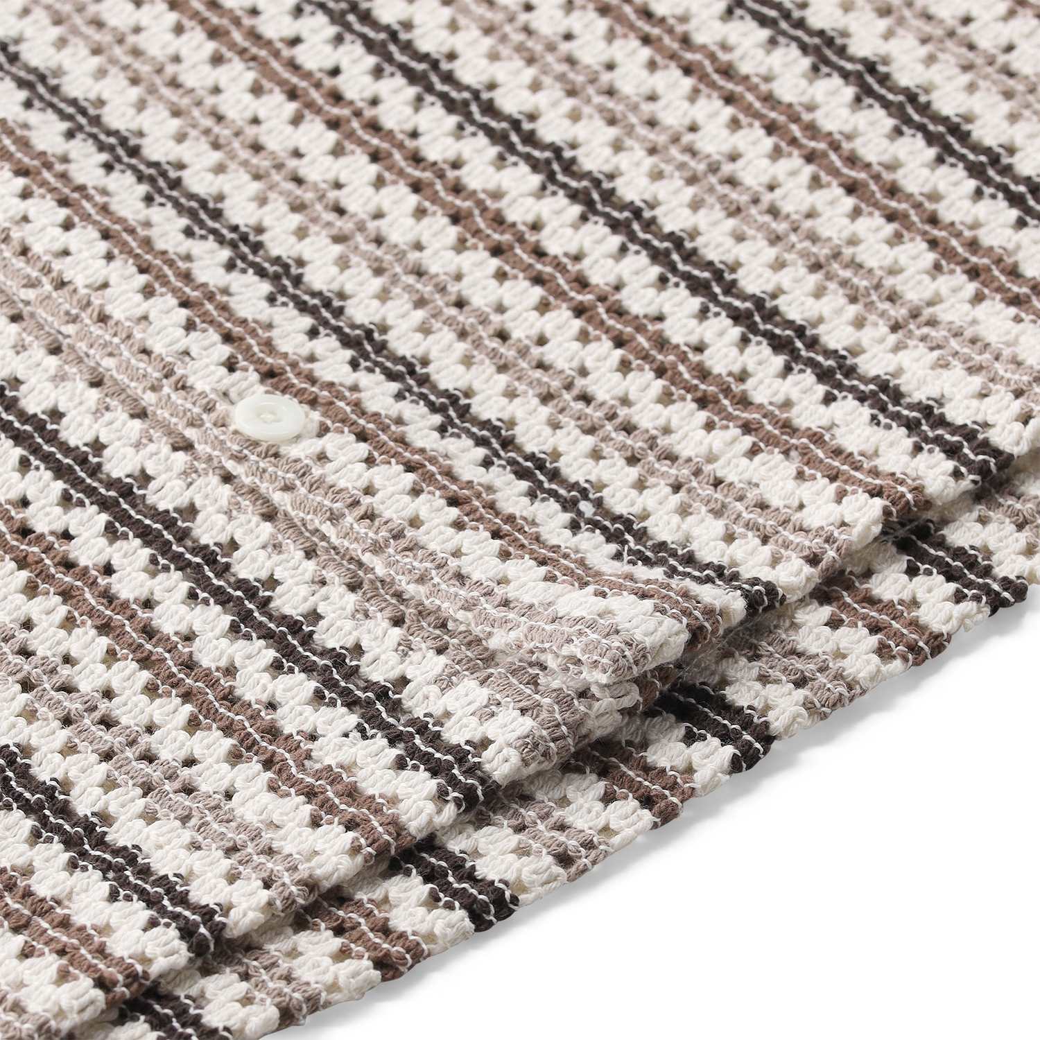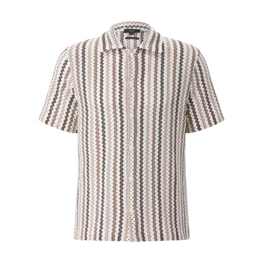 Dieses Kurzarmhemd besticht durch seine hochwertige gestrickte Qualität. Die Strickstruktur verleiht dem klassischen Streifendesign eine besondere Tiefe und Weichheit. Das Modell ist mit einem Kragen und einer durchgehenden Knopfleiste ausgestattet und bietet maximale Bewegungsfreiheit und einen modernen Look.
