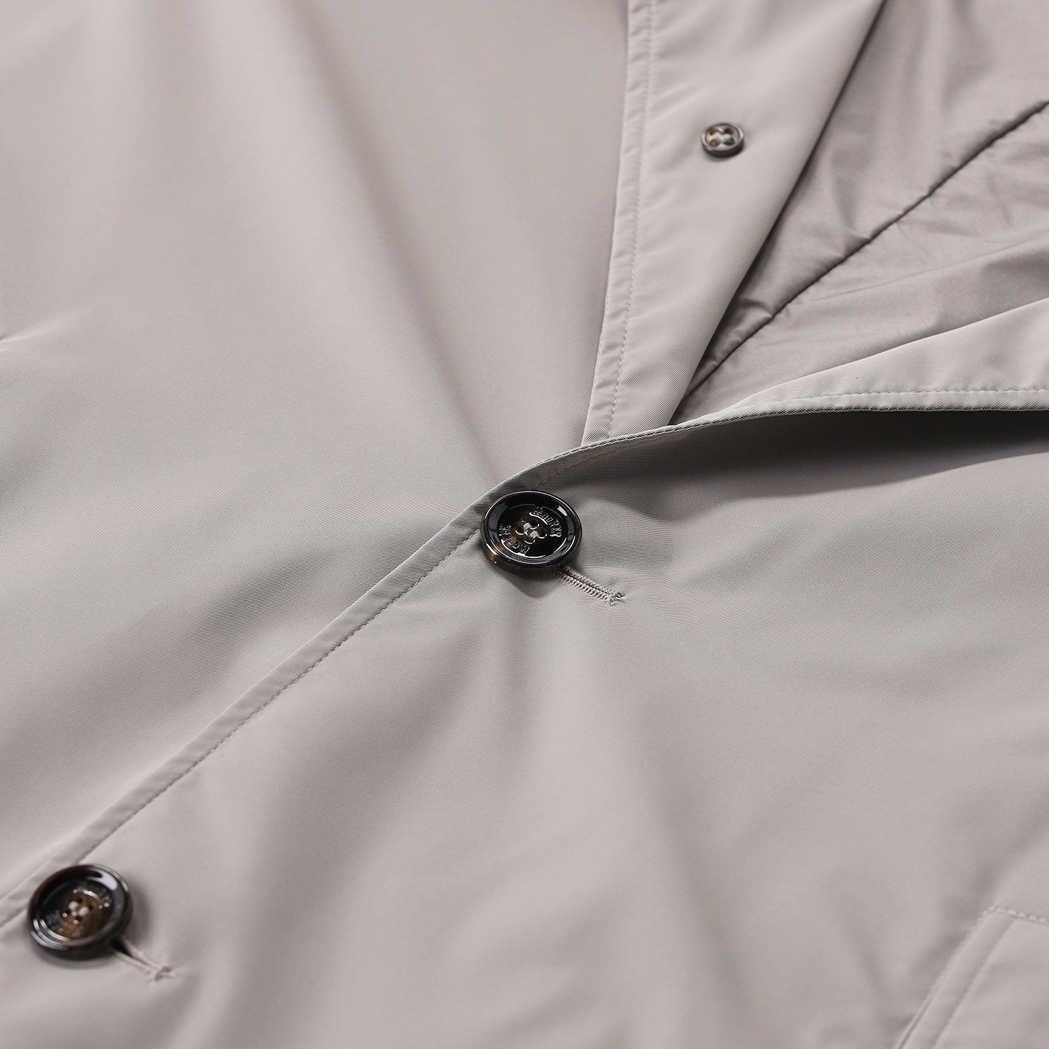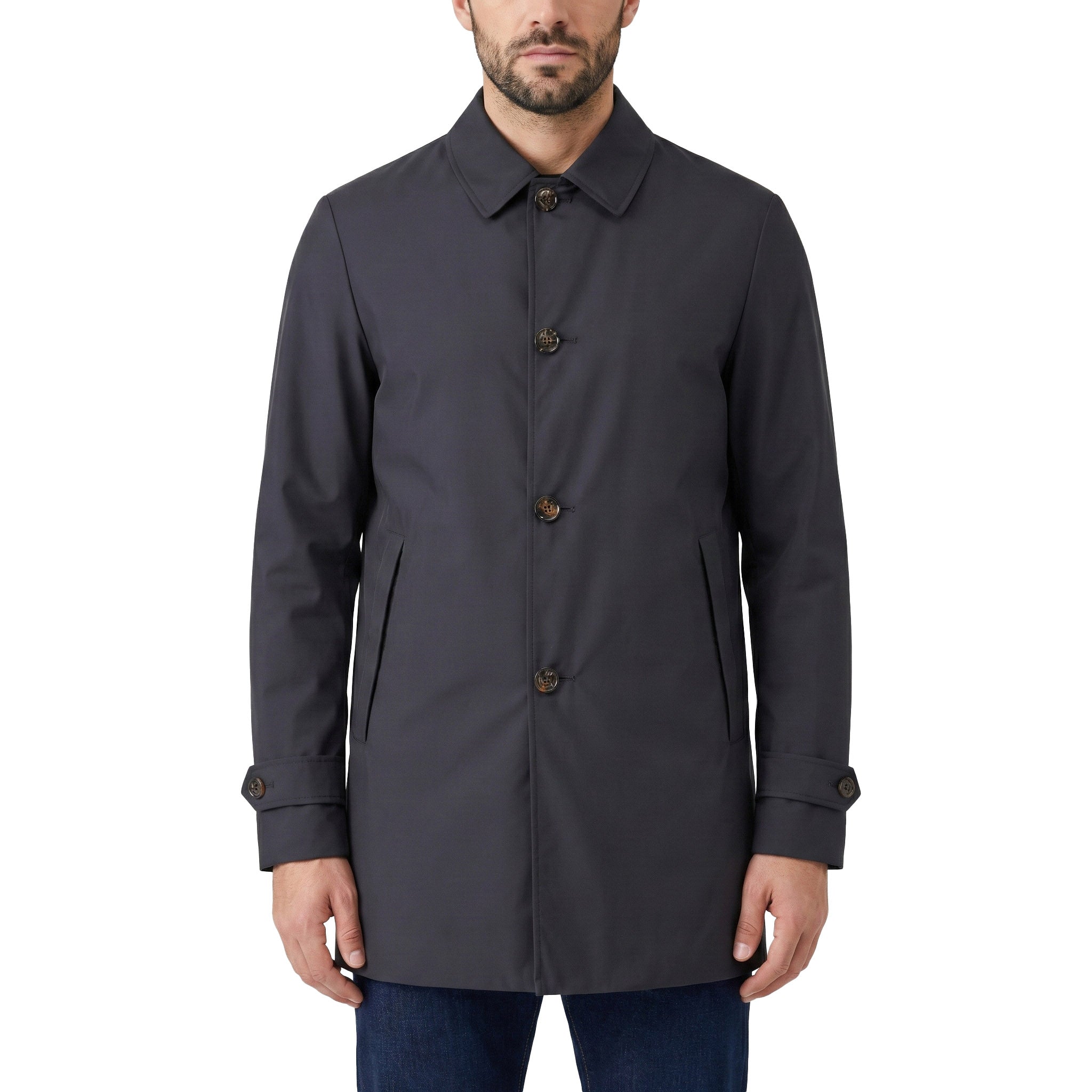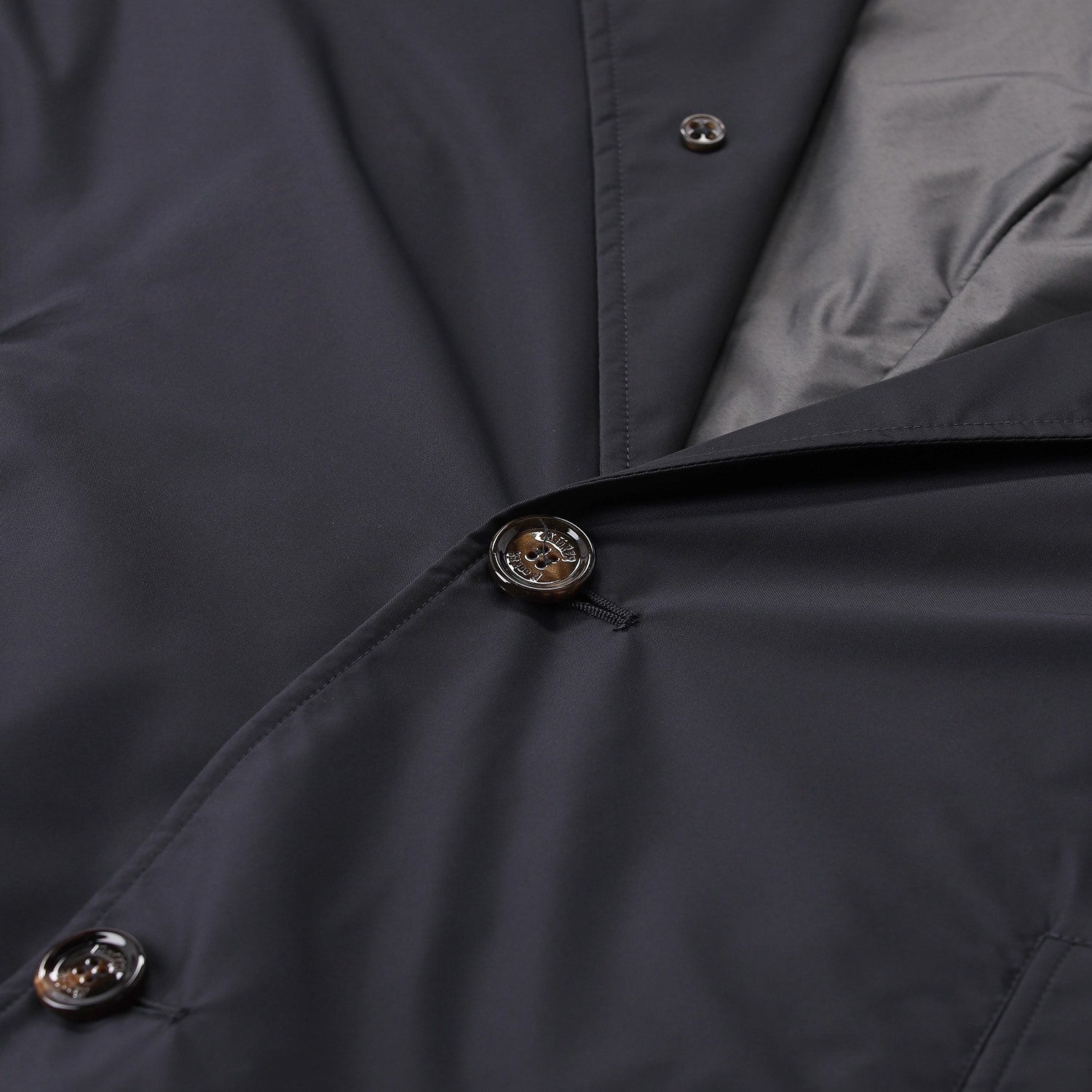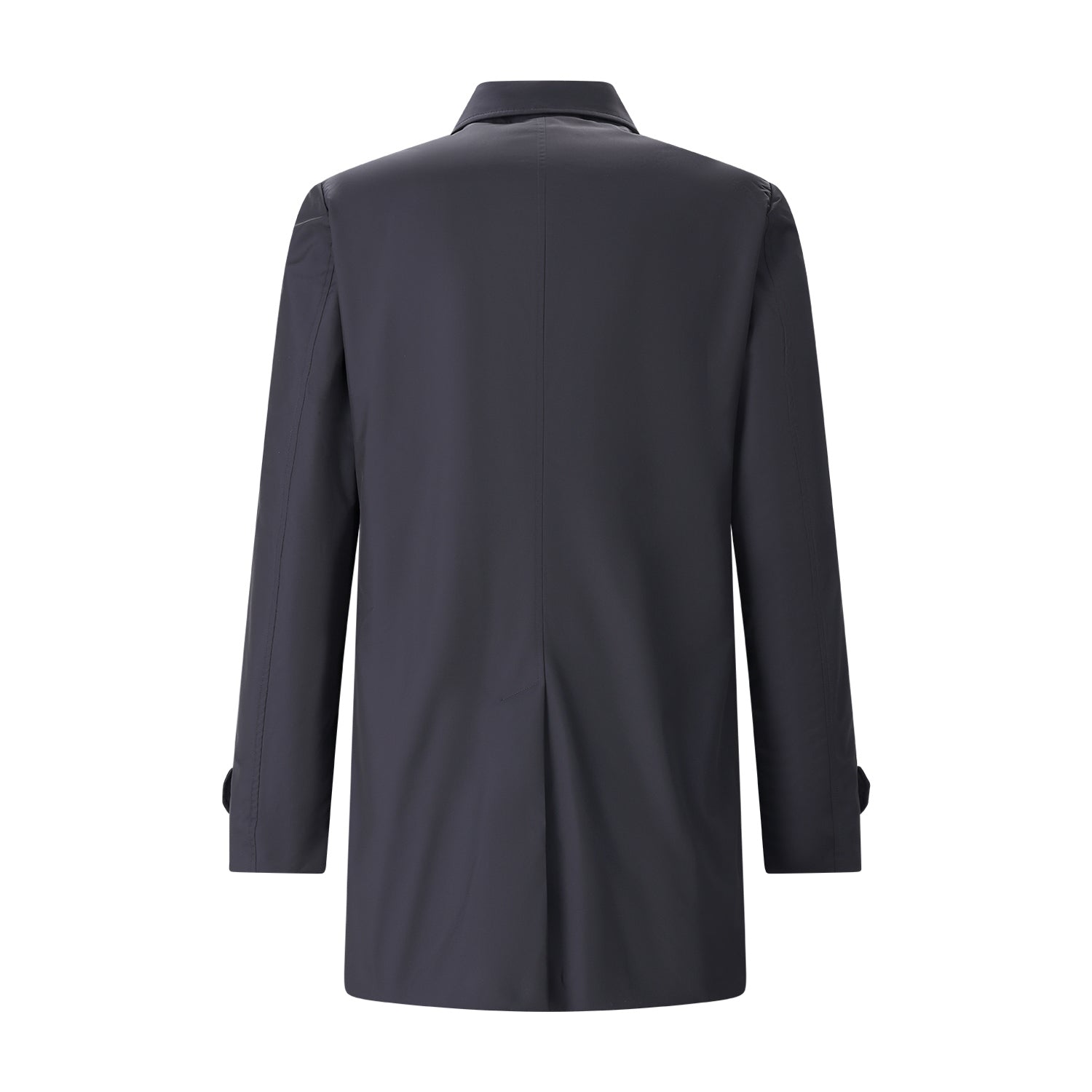 Dieser in Italien gefertigte Kurzmantel besticht durch sein klares Design und funktionale Raffinesse. Das Modell verfügt über eine durchgehende Druckknopfleiste und einen markanten Kragen, der sich ebenfalls sicher per Druckknopf schließen lässt. Praktische Seitentaschen mit Druckknöpfen bieten sicheren Stauraum für Ihre Essentials und runden den cleanen Look perfekt ab. Ein hochwertiges und vielseitiges Essential, das italienische Schneiderkunst in Ihren Alltag bringt.