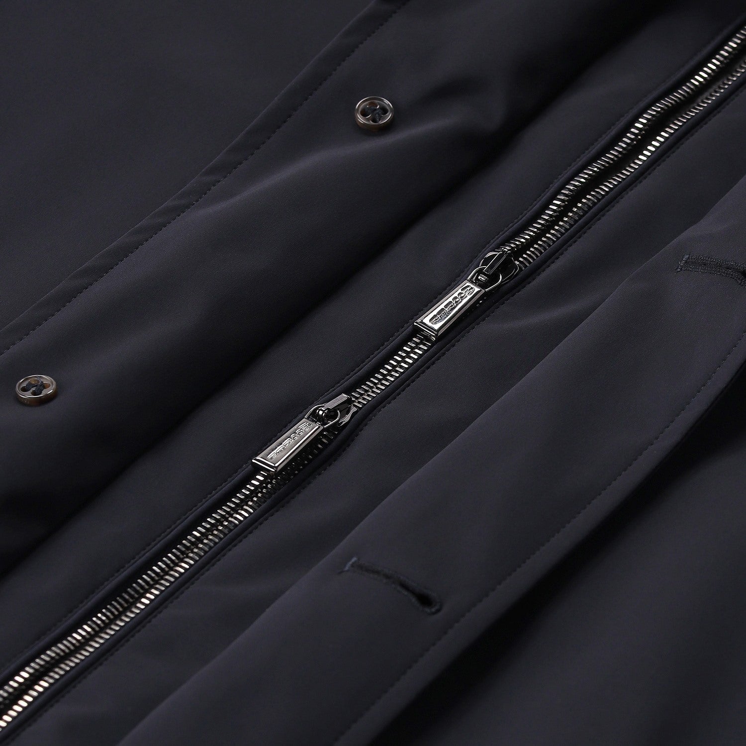 Dieser in Italien gefertigte Kurzmantel vereint luxuriöse Materialität mit funktionalem Design. Dank des edlen Seidenanteils besticht das Modell durch eine besonders hochwertige Haptik und eine elegante Optik. Der klassische Knopfverschluss sorgt für eine zeitlose Silhouette, während praktische Reißverschlusstaschen einen modernen Akzent setzen. Ein besonderes Highlight ist die versteckte Kapuze, die bei Bedarf schnellen Schutz bietet, ohne den cleanen Look des Mantels zu unterbrechen.
