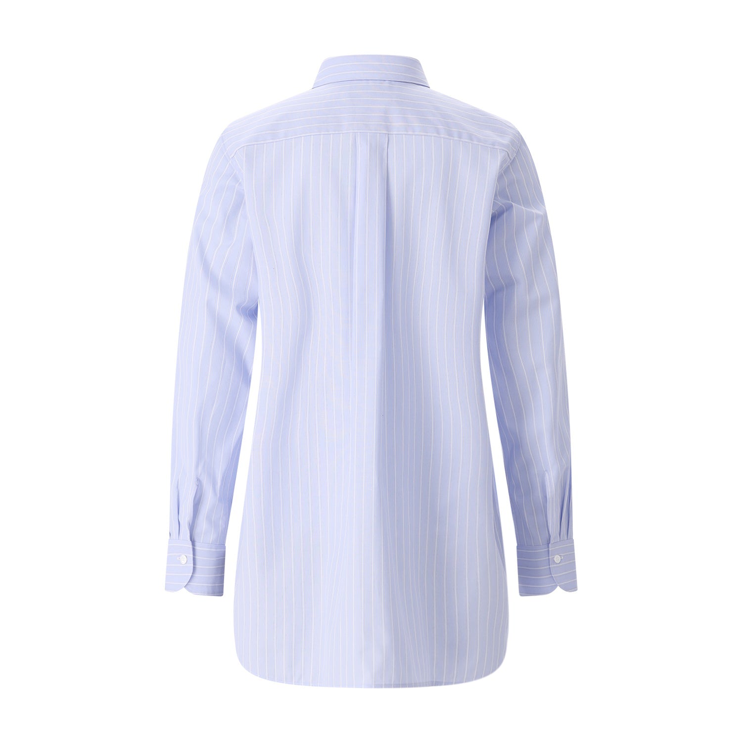 Die Hemdbluse Lenon vereint klassische Elemente mit einem modernen, entspannten Look. Gefertigt in Portugal aus erstklassiger Baumwolle, besticht sie durch ihr feines Streifenmuster, das dem Modell eine frische und zugleich souveräne Ausstrahlung verleiht. Die Bluse verfügt über einen klassischen Kragen, eine durchgehende Knopfleiste und eine Brusttasche, die das cleane Design funktional ergänzt.