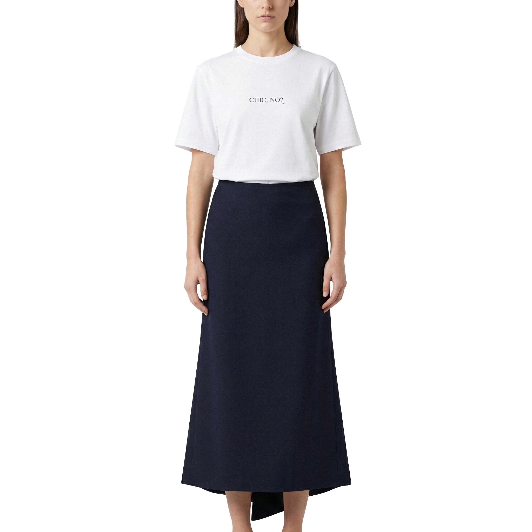 Elegant und professionell: Der Rock aus Woll-Crêpe mit leichtem Stretch sorgt für eine perfekte, figurbetonte Passform an der Hüfte. Das charakteristische Kick-Detail am Saum verleiht dem Rock eine feminine Note, während der hinten verlängerte Schnitt einen modernen, besonderen Akzent setzt. Ein kontrastierender roter Steppstich unterstreicht die Liebe des Hauses zu dezenten, aber hochwertigen Designdetails.
