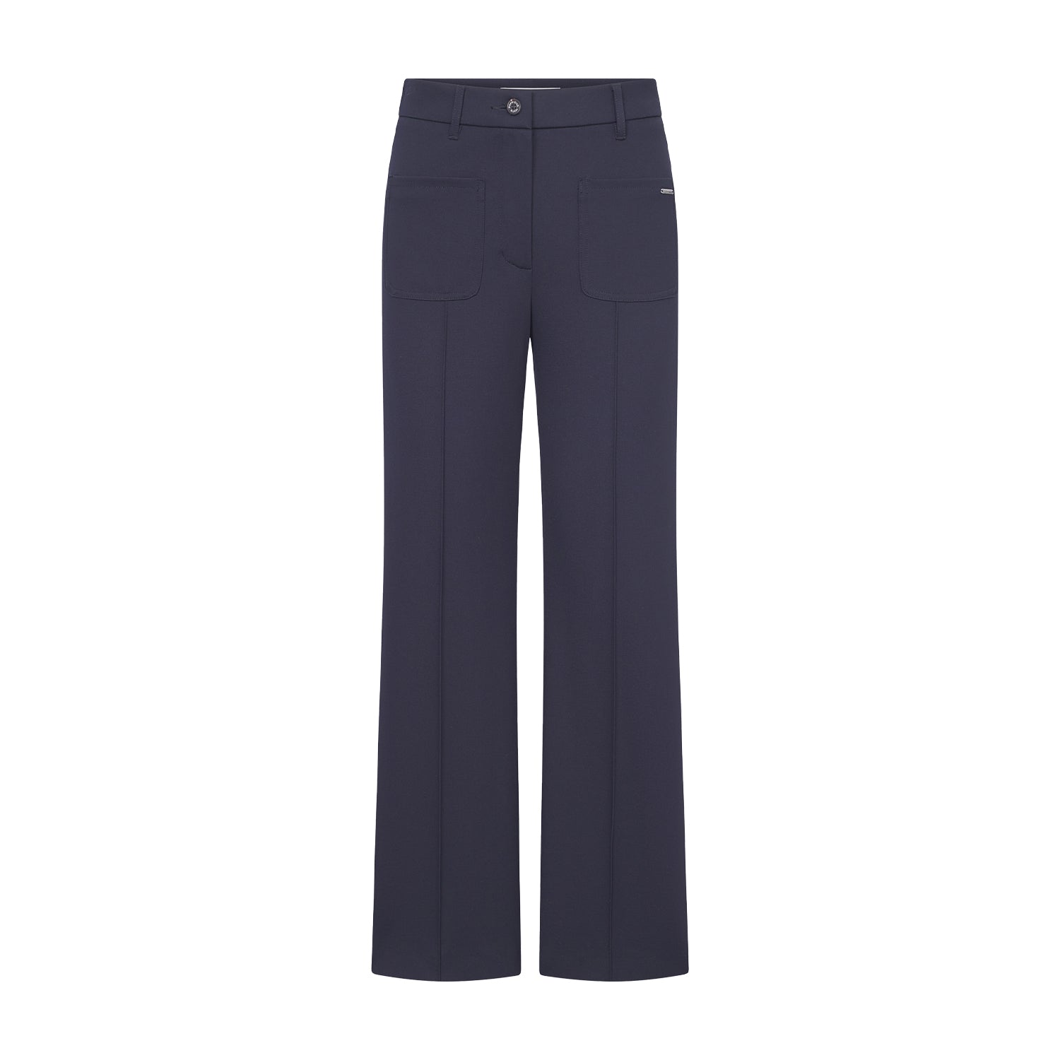 Diese edle Jerseyhose vereint stilvolles Design mit höchstem Tragekomfort. Mit mittlerer Leibhöhe, geradem Bein und eleganter Biese im Vorderteil sorgt sie für eine schmeichelnde Silhouette und einen modernen Auftritt. Aufgesetzte Taschen verleihen der Hose eine lässig-feminine Note. Der bi-elastische Jersey ist angenehm weich, formstabil und nahezu knitterfrei – perfekt für lange Tage im Büro oder unterwegs. Eine Hose, die Komfort und Eleganz mühelos verbindet.
