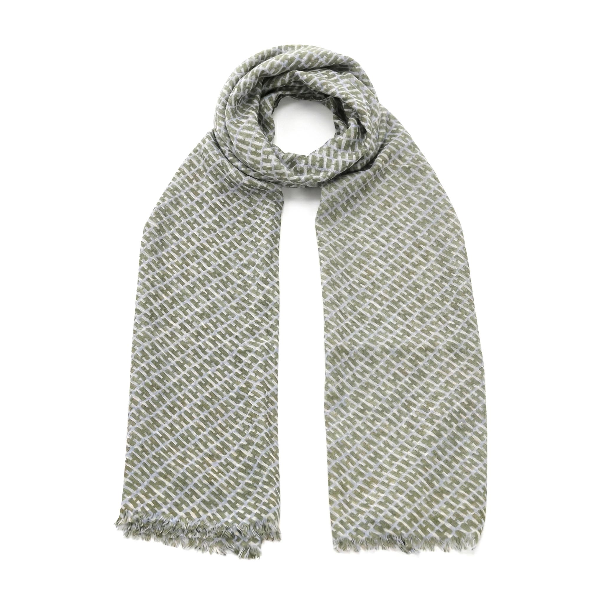 Dieses Tuch ist die Vollendung von Accessoire-Luxus. Gefertigt aus einer exzellenten Mischung aus feinstem Kaschmir und edler Seide, bietet es ein unvergleichlich softes Tragegefühl und eine natürliche Wärme, ohne dabei zu beschweren. Die Kombination dieser beiden Edelgarne verleiht dem Tuch einen dezenten, matten Glanz und einen fließenden Fall, der den anspruchsvollen Charakter des Labels unterstreicht. Das Design besticht durch ein stilvolles, grafisches Allover-H-Muster, das als dezentes Signature-Detail fungiert und dem Tuch eine moderne, architektonische Tiefe verleiht. Die feinen Fransen-Enden lockern die elegante Optik auf und geben dem Tuch eine entspannte Note.