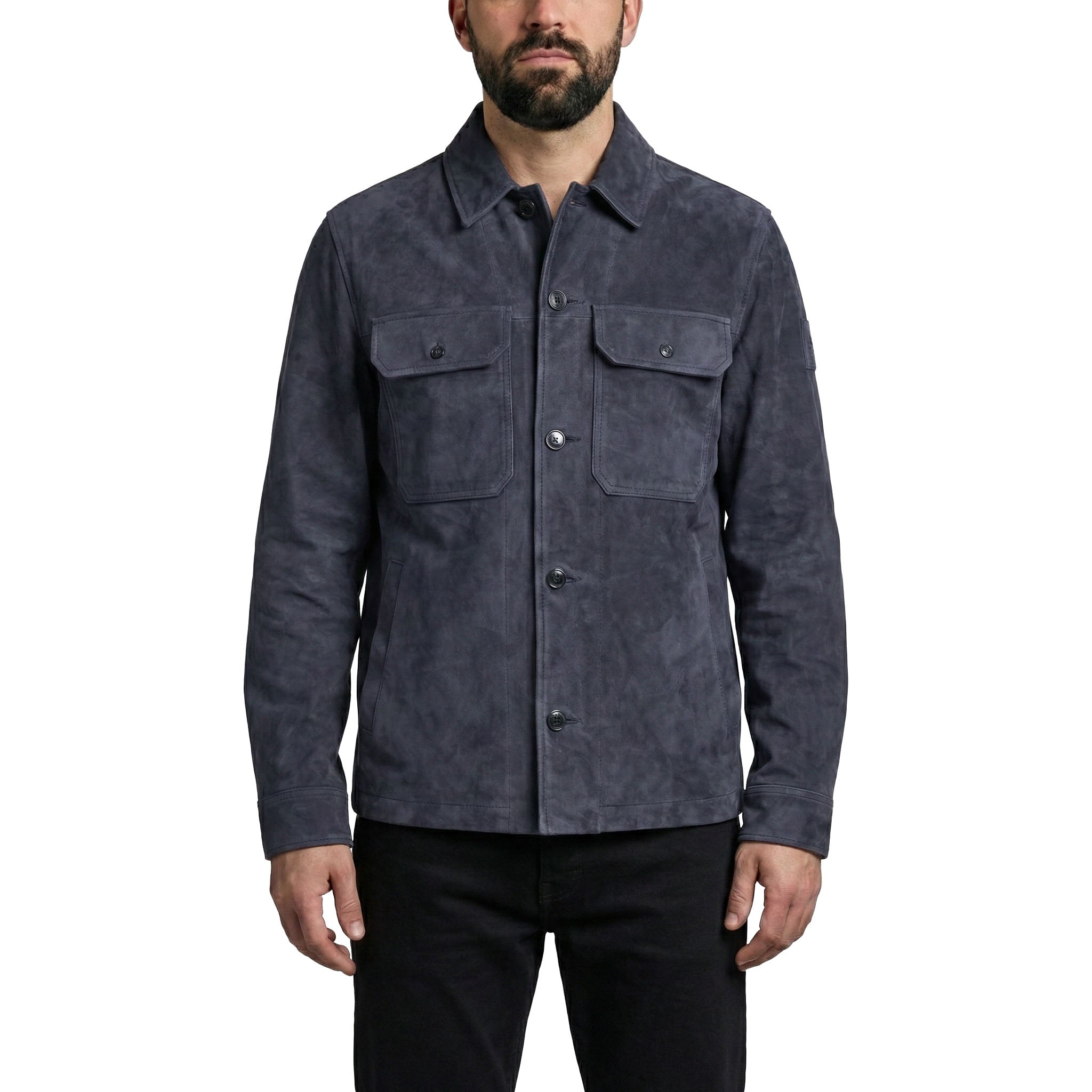 Dieses Overshirt überzeugt durch seine gerade Passform und das leichte, weiche Veloursleder, das für ein besonders angenehmes Tragegefühl sorgt. Mit klassischem Hemdkragen, durchgehender Knopfleiste und Pattentaschen mit Knopf an der Brust sowie seitlichen Eingriffstaschen bietet es funktionale Details. Farblich passende Emaille-Metalldetails und das Logo-Patch setzen einen modernen Akzent. Ein stilvolles und modisches Kleidungsstück für jede Gelegenheit.