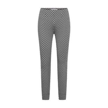 Diese figurbetonte Hose aus elastischem Material passt sich perfekt Ihrer Silhouette an und sorgt für eine bequeme, dennoch stylische Passform. Das auffällige geometrische Muster setzt einen modernen Akzent und macht die Hose zu einem echten Blickfang.