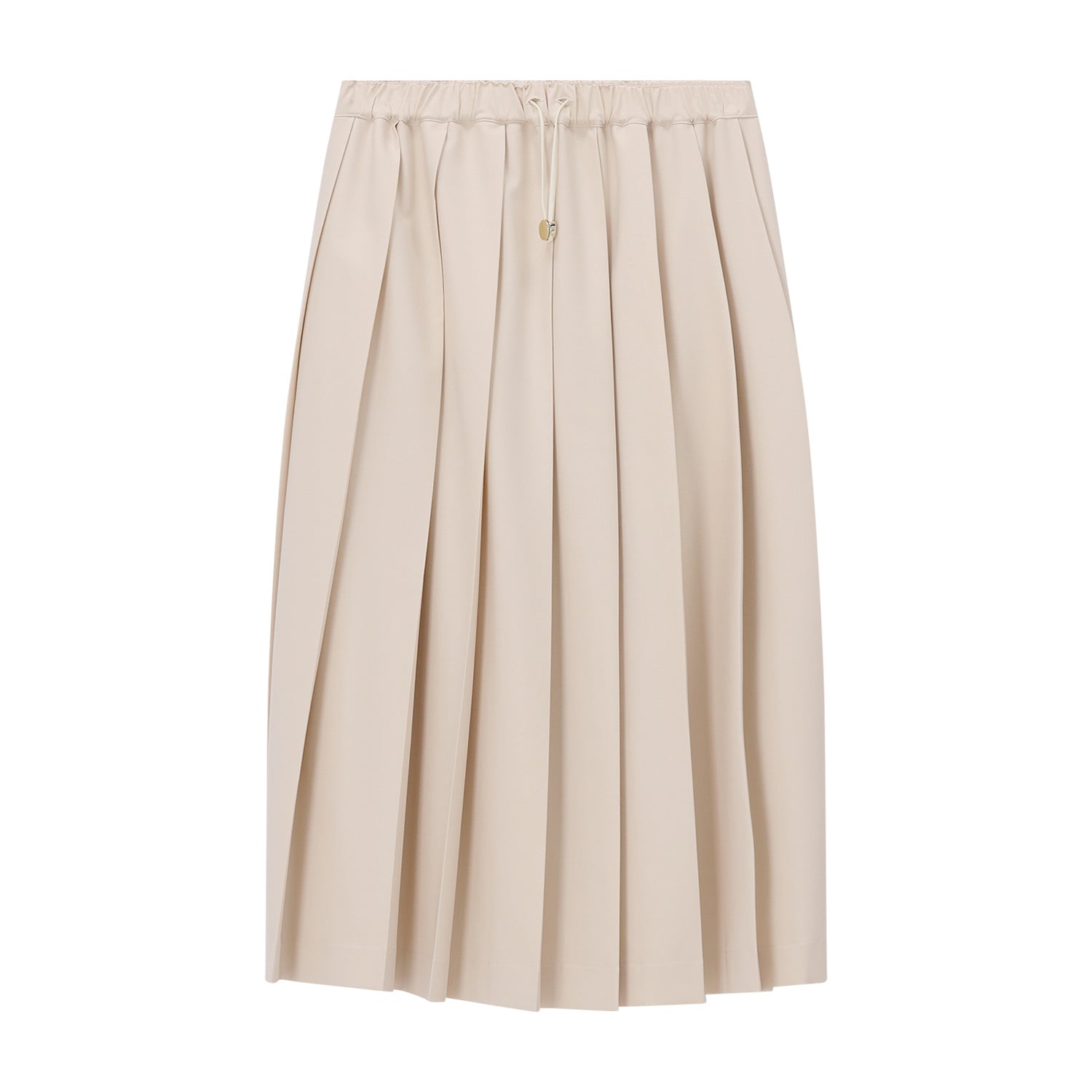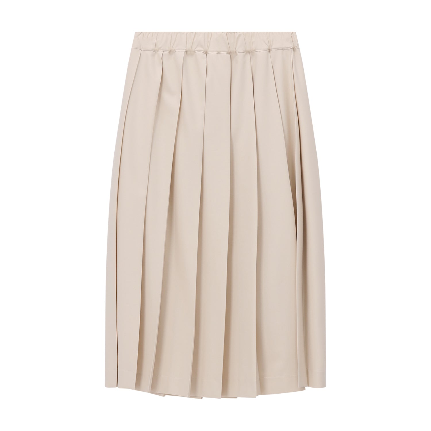 Dieser in Italien gefertigte Plisseerock besticht durch seine zeitgemäßen Volumen und ein reduziertes, puristisches Design. Er ist aus Tecno-Tailoring gefertigt – einem innovativen, nachhaltigen Funktionsgewebe, das durch seine glatte, kühle Oberfläche und einen besonders eleganten Fall überzeugt. Die Kombination aus präzisen Falten und einem komfortablen elastischen Bund verleiht dem Rock eine feminine Silhouette mit modernem Touch.