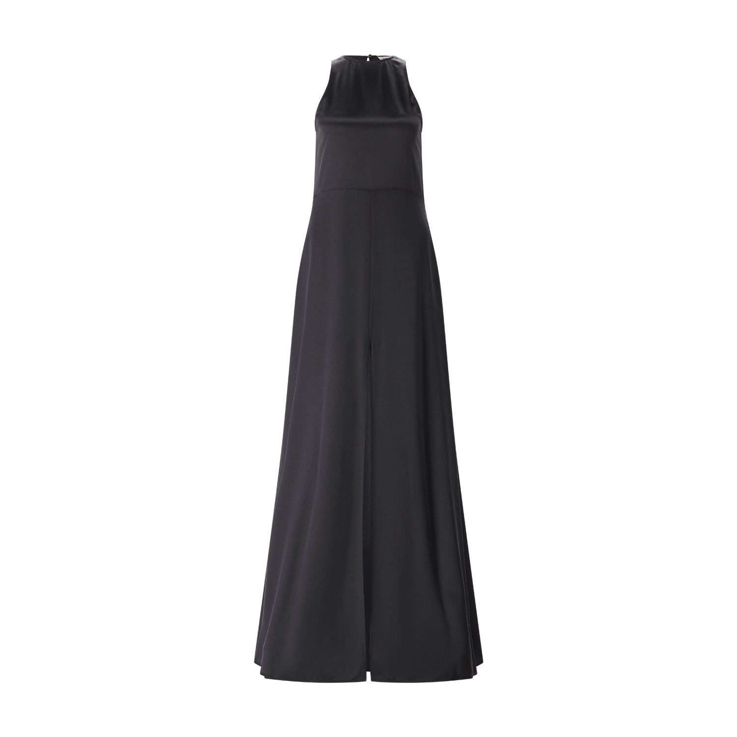 Dieses Maxikleid ist die Definition von purer Extravaganz und zeitloser Eleganz. Gefertigt im Herzen Frankreichs aus 100 % feinster Seide, besticht es durch seinen fließenden Fall und einen luxuriösen, dezenten Glanz. Die ärmellose Silhouette betont die Schulterpartie und sorgt für eine klare, minimalistische Linienführung. Das Highlight des Kleides ist der hohe Schlitz an der Vorderseite, der bei jeder Bewegung das Bein elegant in Szene setzt und dem klassischen Schnitt eine verführerische Note verleiht.