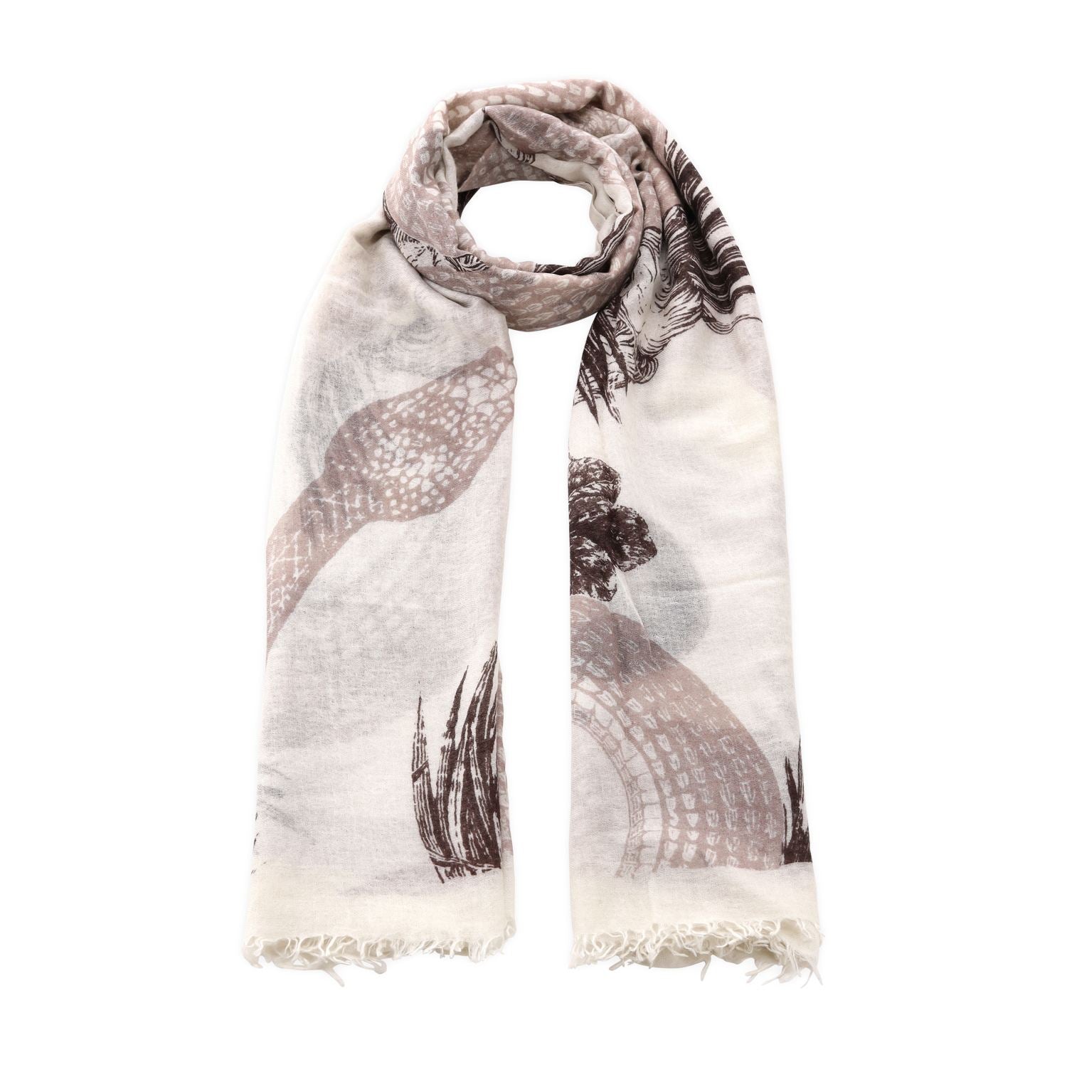 Dieser luxuriöse Schal aus reinem Kaschmir wird in Nepal gefertigt und besticht durch seine außergewöhnliche Weichheit und edle Leichtigkeit. Der natürliche Print verleiht dem Design eine harmonische, zeitlose Ausstrahlung. Als besonderes Extra wird der Schal mit einem Armband "NAMASTÉ" geliefert.