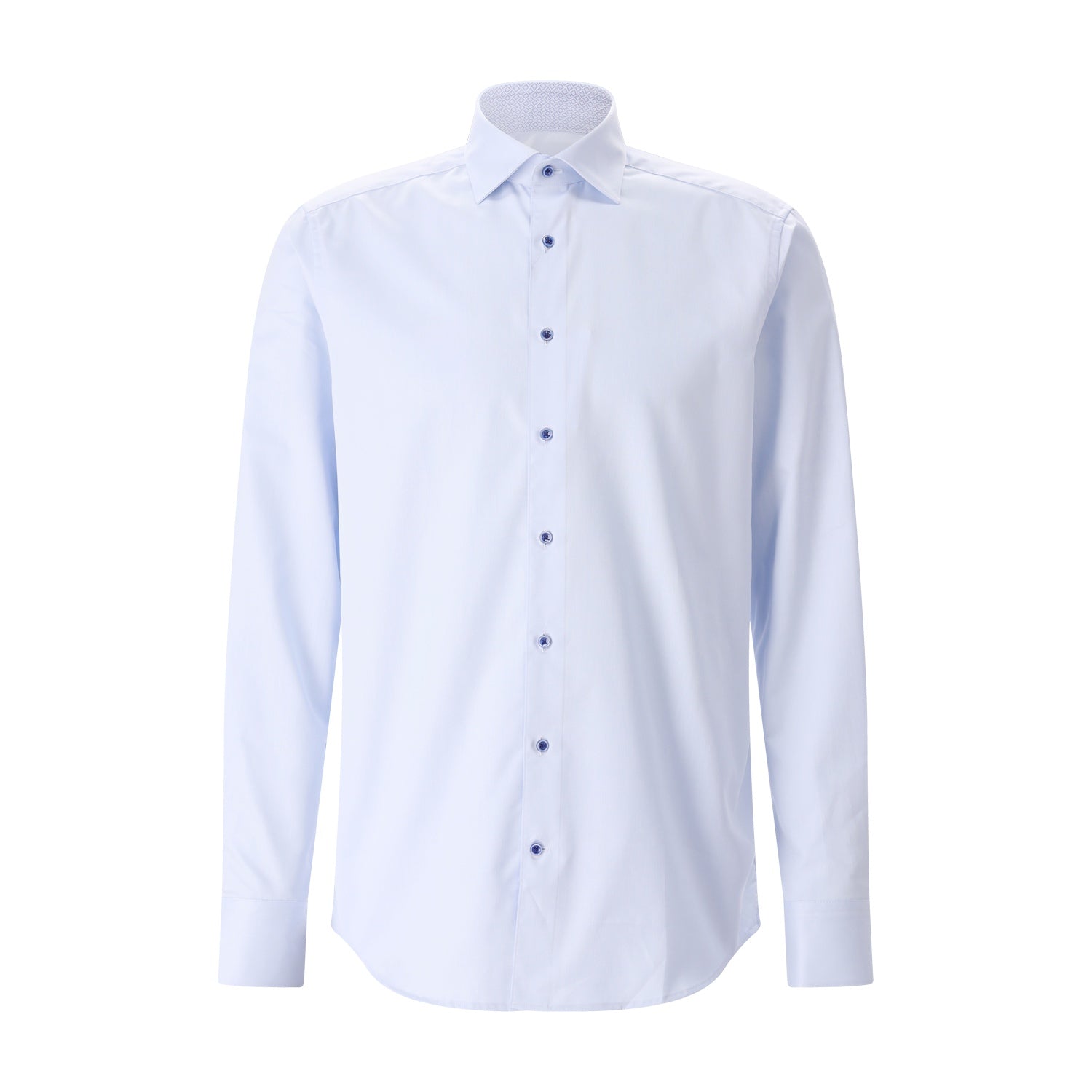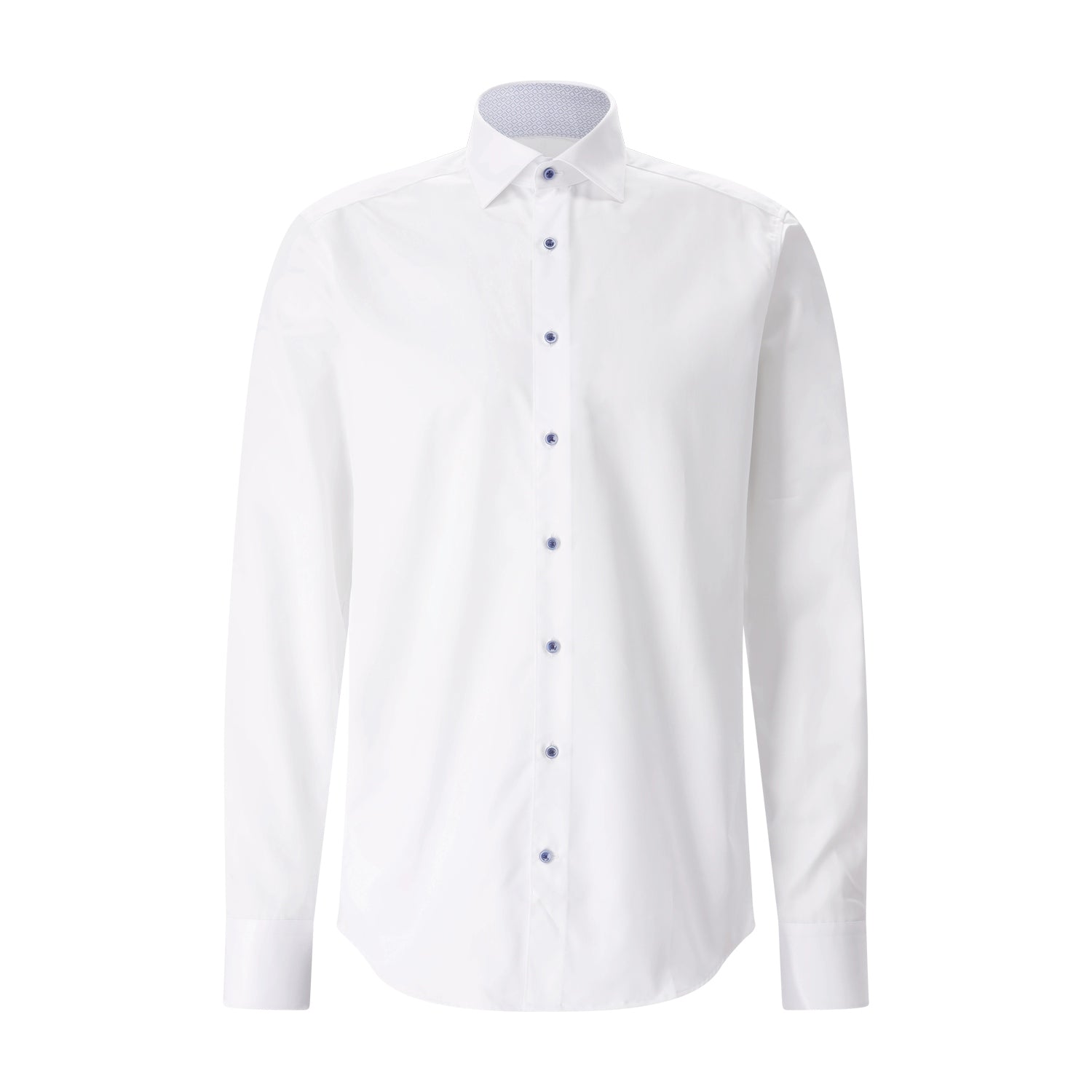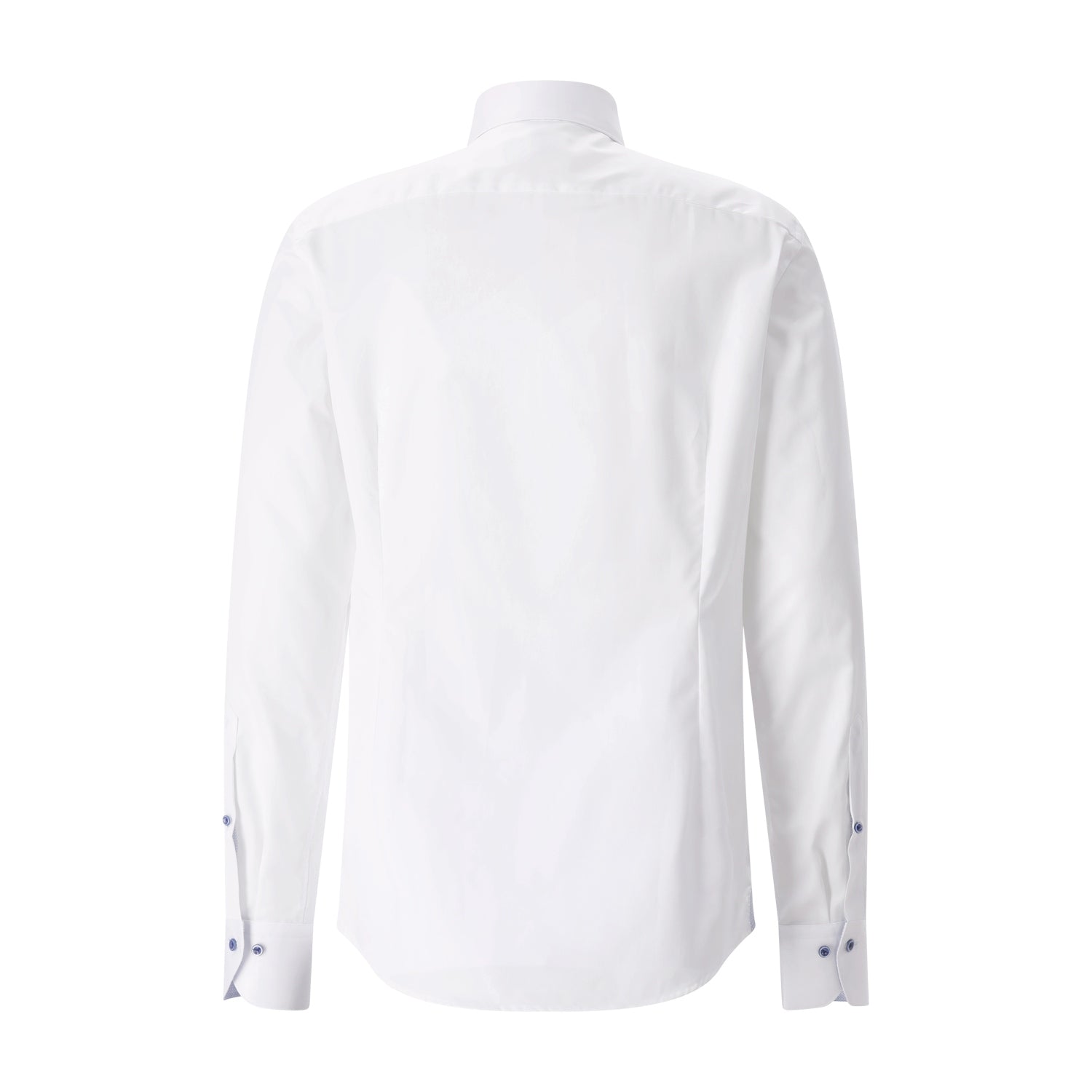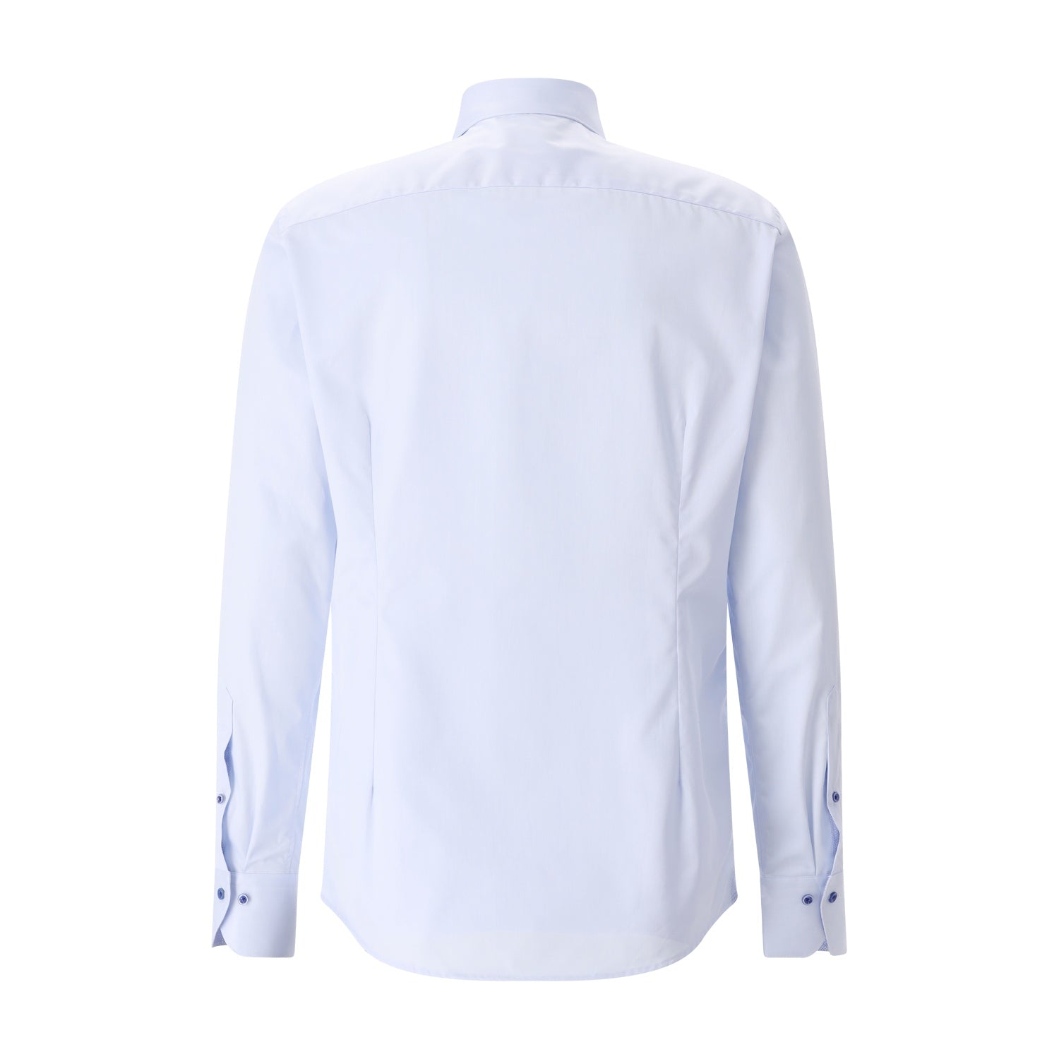 Ein Slim-Fit Hemd aus zweifacher Baumwolle, das dank seiner besonderen Stoffstruktur sofort ins Auge fällt. Der figurbetonte Schnitt verleiht eine moderne, klare Silhouette, während die feine Oberflächenstruktur dem Design eine edle Tiefe und hochwertige Haptik schenkt.