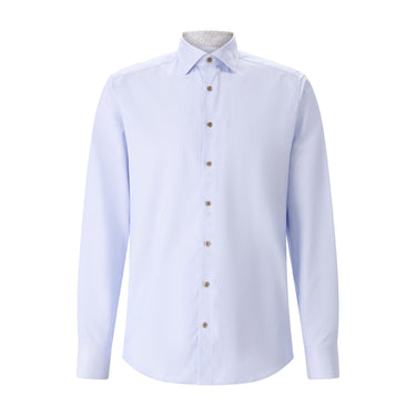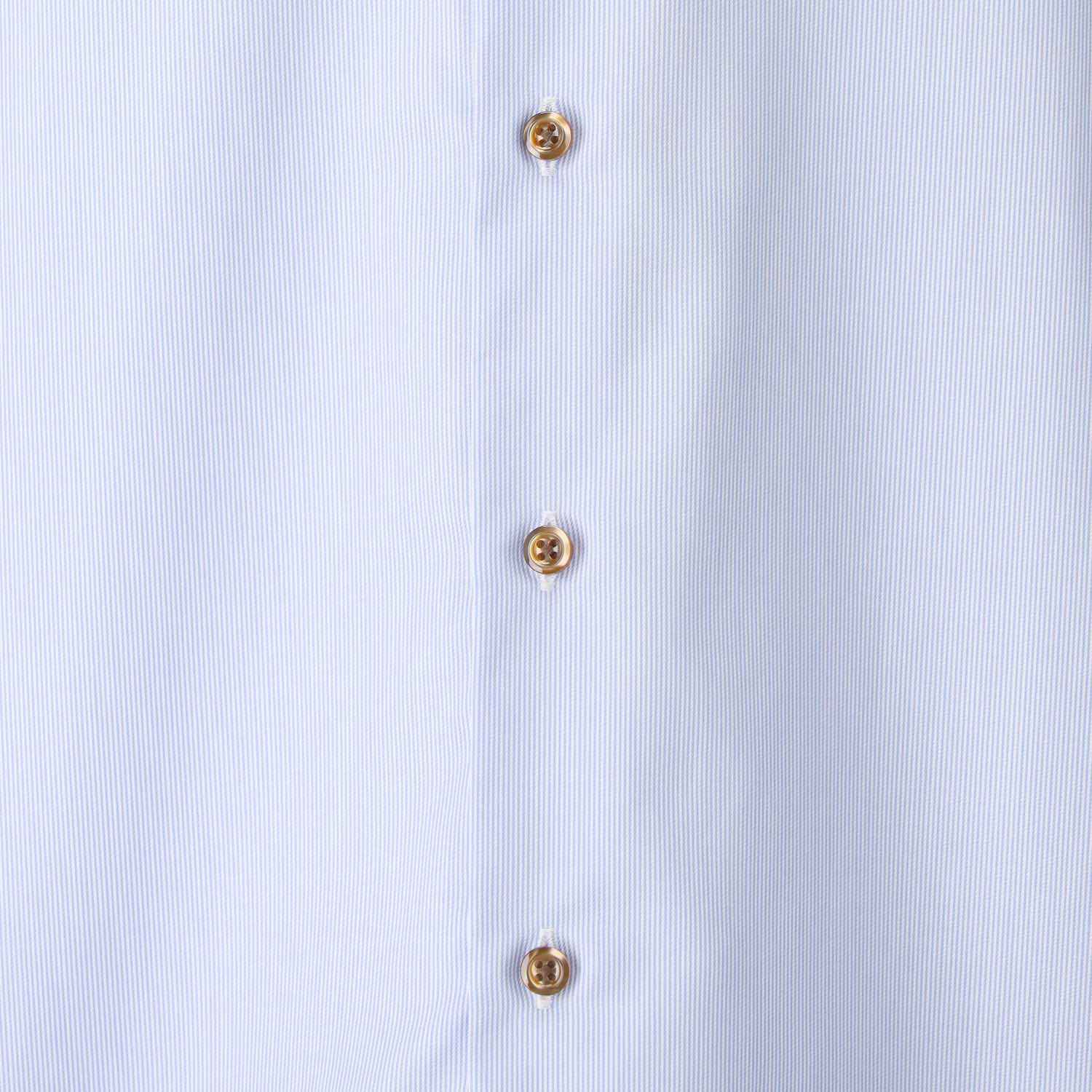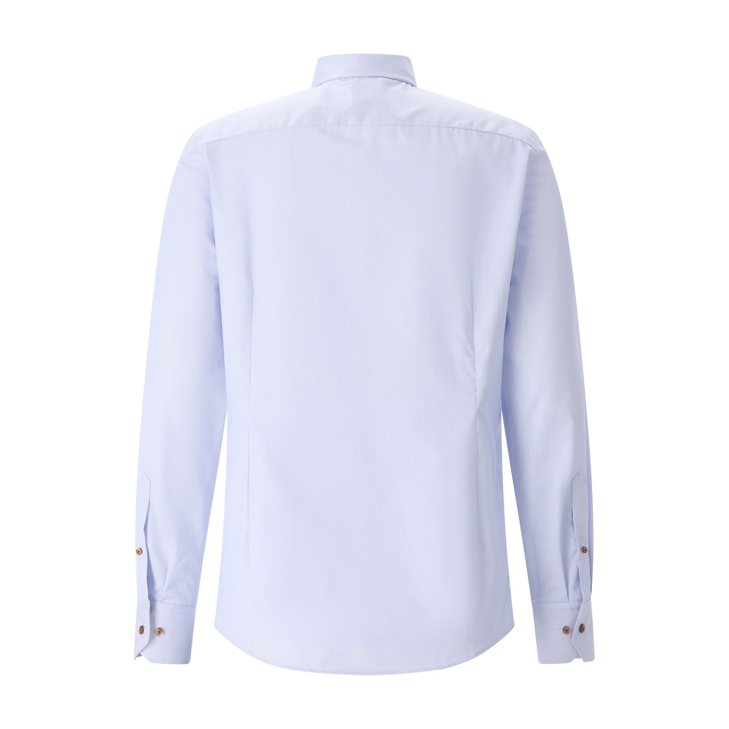 Ein Slim-Fit Hemd aus zweifacher Baumwolle, das durch sein dezentes Streifenmuster eine moderne und zugleich klassische Ausstrahlung erhält. Der figurbetonte Schnitt betont die Silhouette, während das feine Muster dem Look elegante Struktur und Tiefe verleiht.