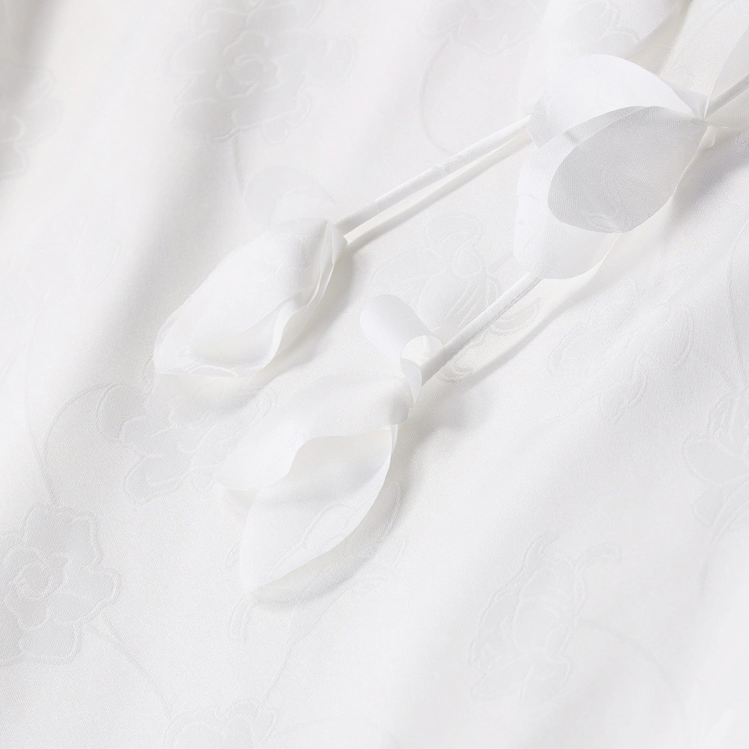Dieses Midikleid verzaubert durch einen leicht fließenden Stoff, der jede Ihrer Bewegungen sanft umspielt. Das edle, monochrome Blumenmuster verleiht dem Design eine moderne Tiefe, während die schmalen Träger mit filigranen Blumenapplikationen für einen romantischen Blickfang sorgen. Ein diskreter, seitlicher Reißverschluss garantiert zudem eine perfekte, körpernahe Passform bei maximalem Tragekomfort.