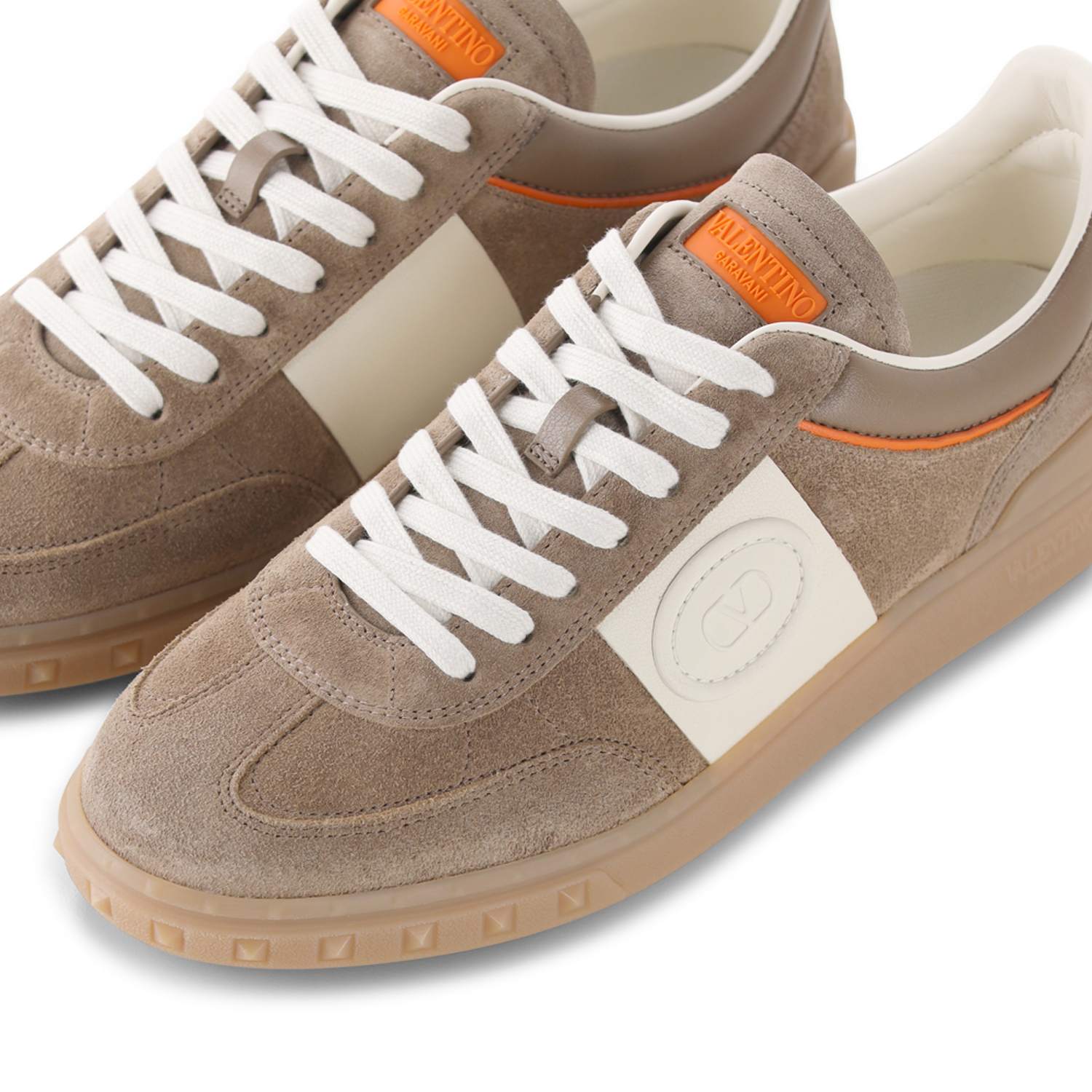 Diese Low-Top-Sneaker aus feinem Spaltleder und luxuriösem Kalbsnappaleder vereinen erstklassige Materialien mit ikonischem Design. Ein Leder-Patch mit V-Logo sowie das Valentino Garavani Siebdruck-Logo auf der Lasche setzen stilvolle Akzente, während das zusätzliche Band aus Kalbsnappaleder den edlen Look vollendet. Die maßgeschneiderte Gummisohle mit charakteristischem Stud-Detail sorgt für optimalen Komfort und einen souveränen Auftritt. Hergestellt in Italien.