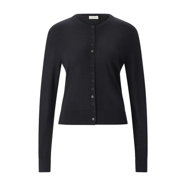 Diese Strickjacke besticht durch eine luxuriöse Materialkomposition aus Seide, Wolle und Kaschmir. Die hochwertige Mischung sorgt für ein besonders weiches Tragegefühl und eine edle Optik. Das Design wird durch eine durchgehende Knopfleiste abgerundet, die dem Modell eine zeitlose Eleganz verleiht und vielseitige Kombinationsmöglichkeiten bietet.