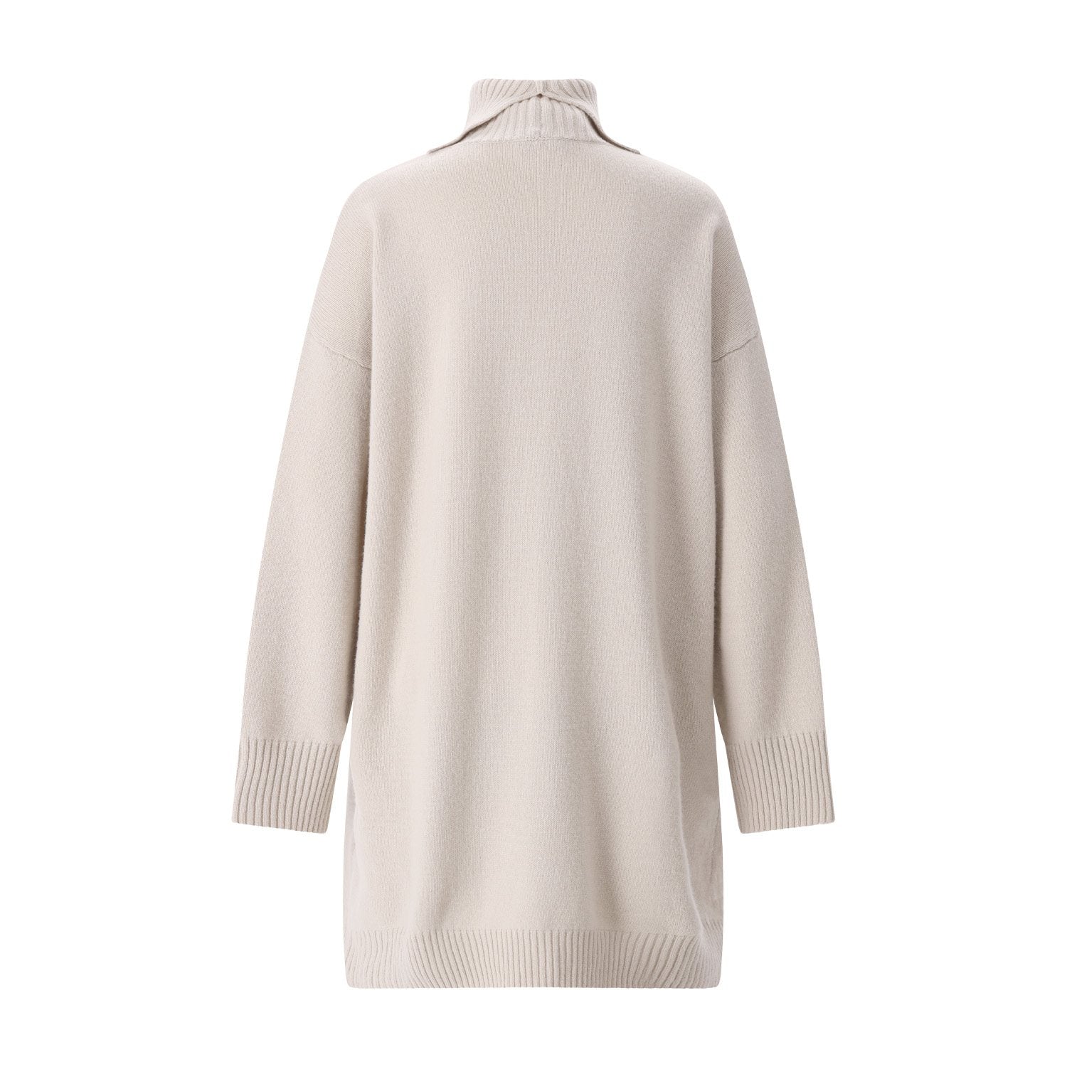 Dieses Strickkleid aus feinster Merinowolle und edlem Kaschmir vereint zeitlose Eleganz mit modernem Komfort. Der weiche Rollkragen und die lockere Passform sorgen für eine entspannte Silhouette, während der kurze Schnitt dem Look eine frische, modische Note verleiht. Mit höchster Handwerkskunst in Italien gefertigt, ist es das perfekte Kleid für stilvolle Auftritte mit Wohlfühlfaktor.