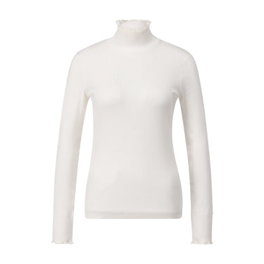 Dieses elegante Langarmshirt besticht mit einem doppelten, gerüschten Stehkragen, der dem Design eine feminine Raffinesse verleiht. Aus leichtem, angenehm zu tragendem Stoff gefertigt, schmiegt es sich in Slim-Fit-Passform perfekt an die Figur an und sorgt für einen stilvollen Auftritt mit hohem Tragekomfort.