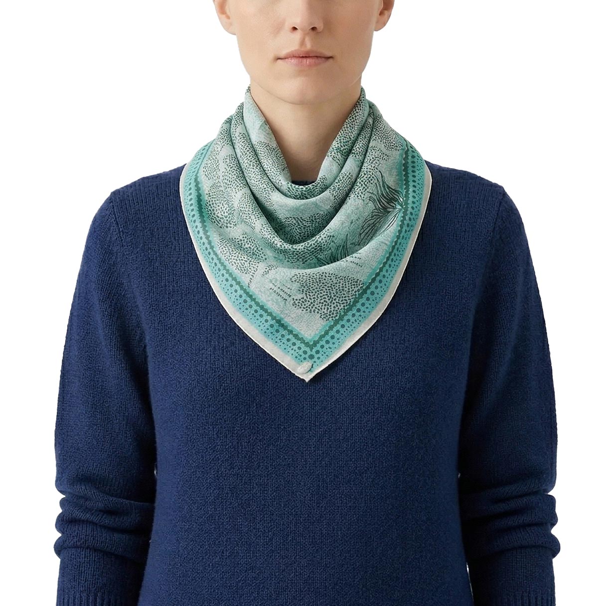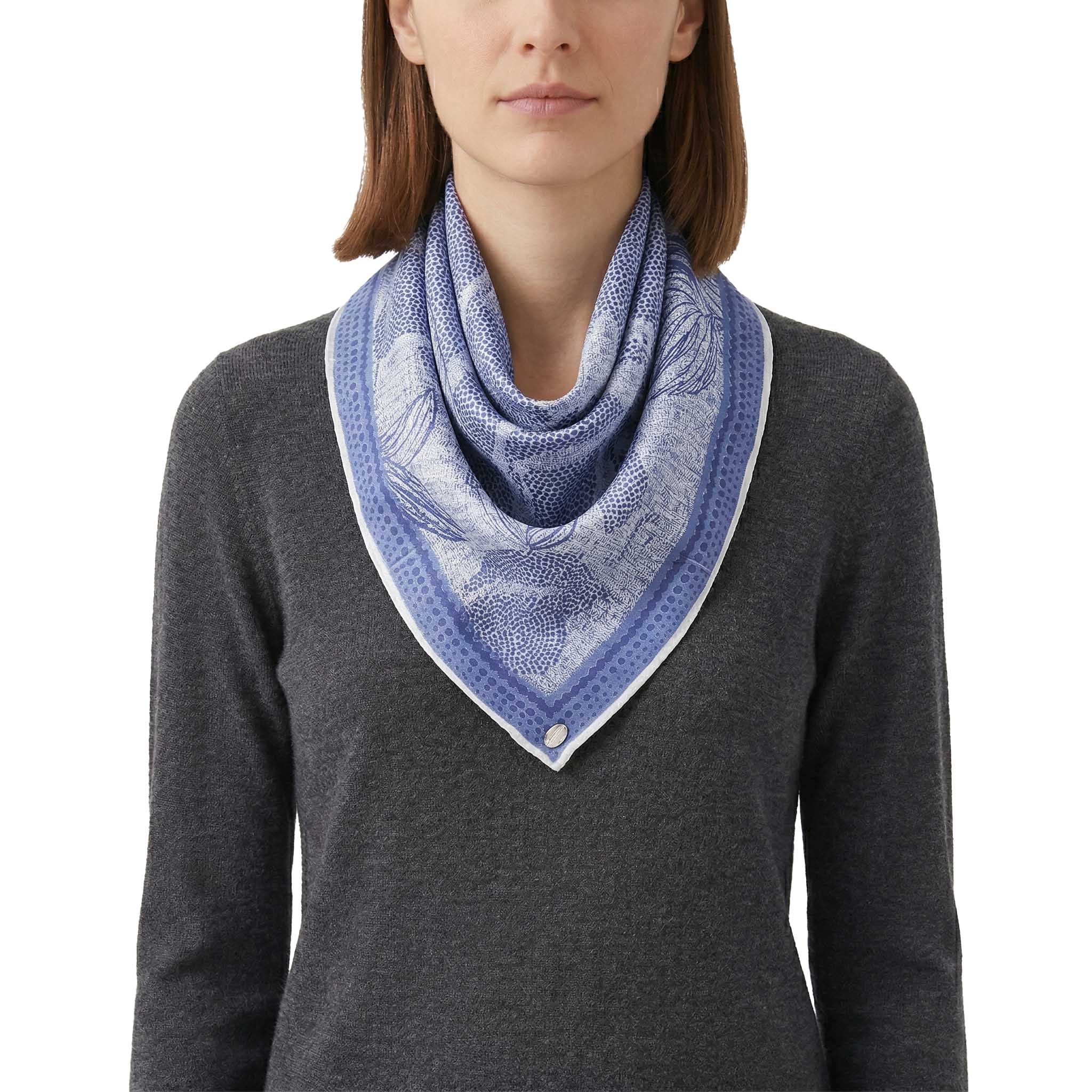 Dieses exklusive Tuch aus reiner Seide ist ein vielseitiges Accessoire, das jedem Outfit eine luxuriöse Note verleiht. Das raffinierte Design kombiniert ein klassisches Punktemuster mit einem Blumenprint und schafft so eine harmonische Verbindung aus Tradition und Moderne. Dank der Form lässt es sich auf vielfältige Weise binden – ob elegant um den Hals, als Akzent an Ihrer Tasche oder als stilvolles Haar-Accessoire. Die fließende Qualität der Seide sorgt für einen sanften Schimmer und ein unvergleichlich zartes Gefühl auf der Haut.