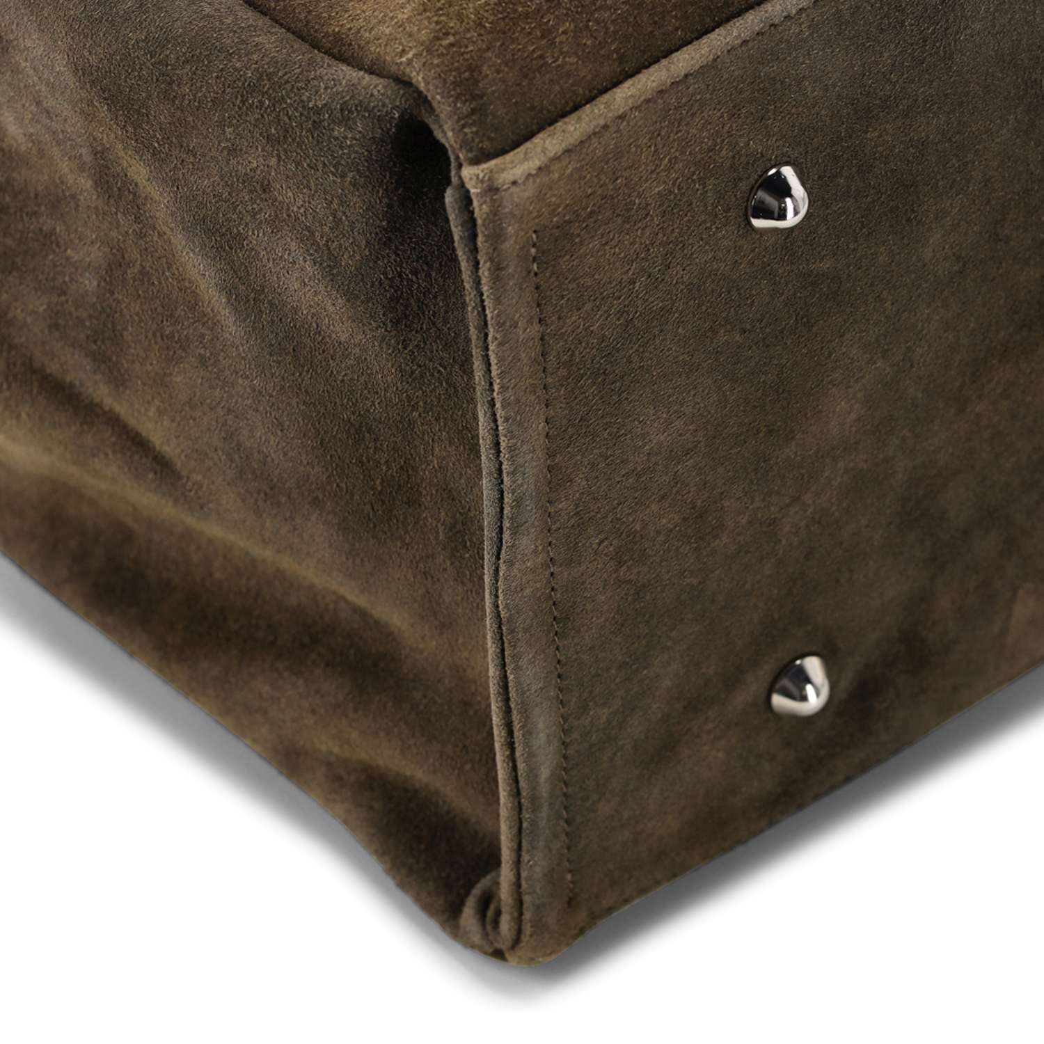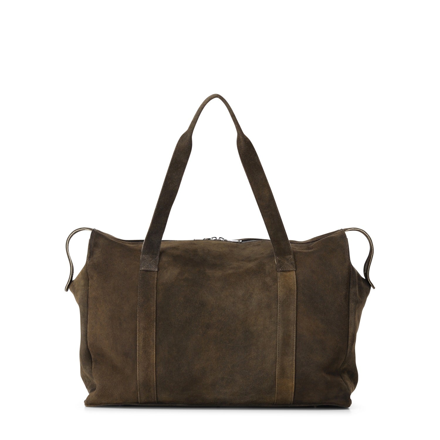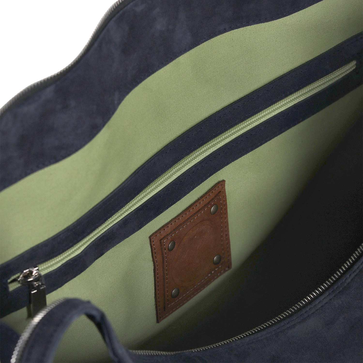 Diese große Weekender-Tasche aus hochwertigem Ziegenveloursleder in edlem Walnussbraun vereint handwerkliche Präzision mit stilvoller Funktionalität. Das grüne Canvas-Futter verleiht ihr einen eleganten Kontrast und schützt Ihre Reiseutensilien zuverlässig. Mit zwei Reißverschlüssen, einer geräumigen Innentasche und zwei kleineren Taschen bietet sie ausreichend Platz und Übersicht für alles, was Sie unterwegs brauchen. Bodennieten und verstärkte Ecken sorgen für Stabilität und Langlebigkeit, während die abgesteppten Griffe und der bequeme Schulterriemen flexibles Tragen ermöglichen.