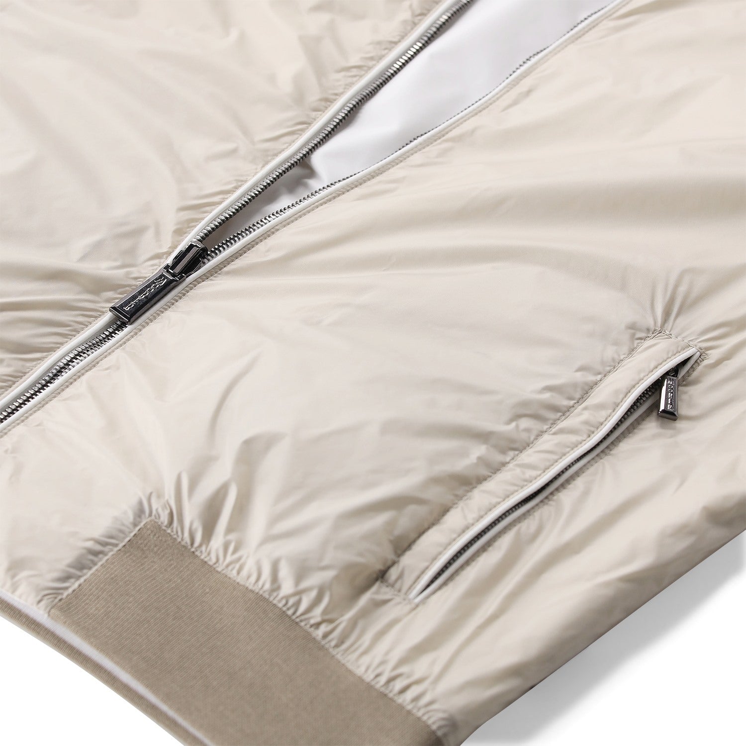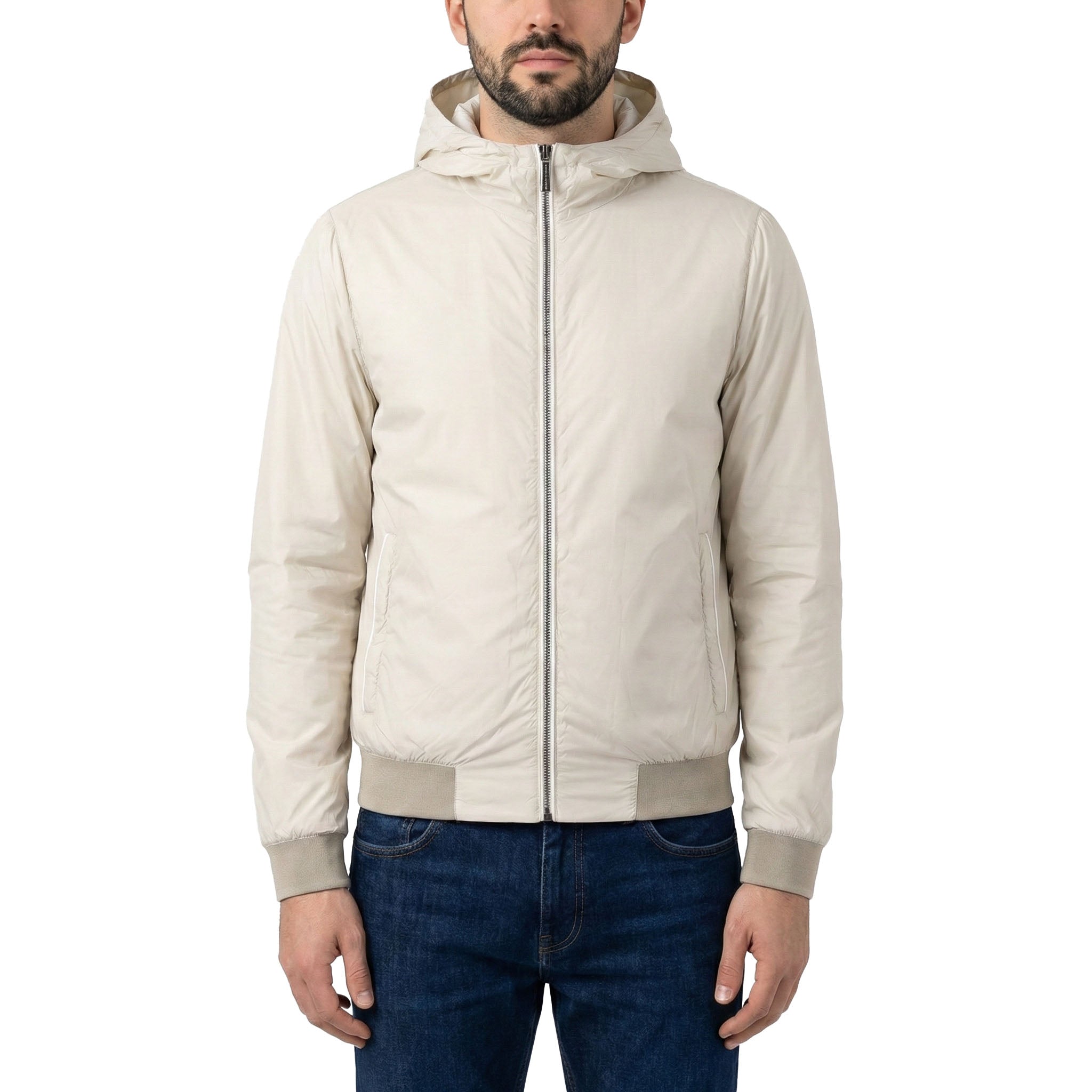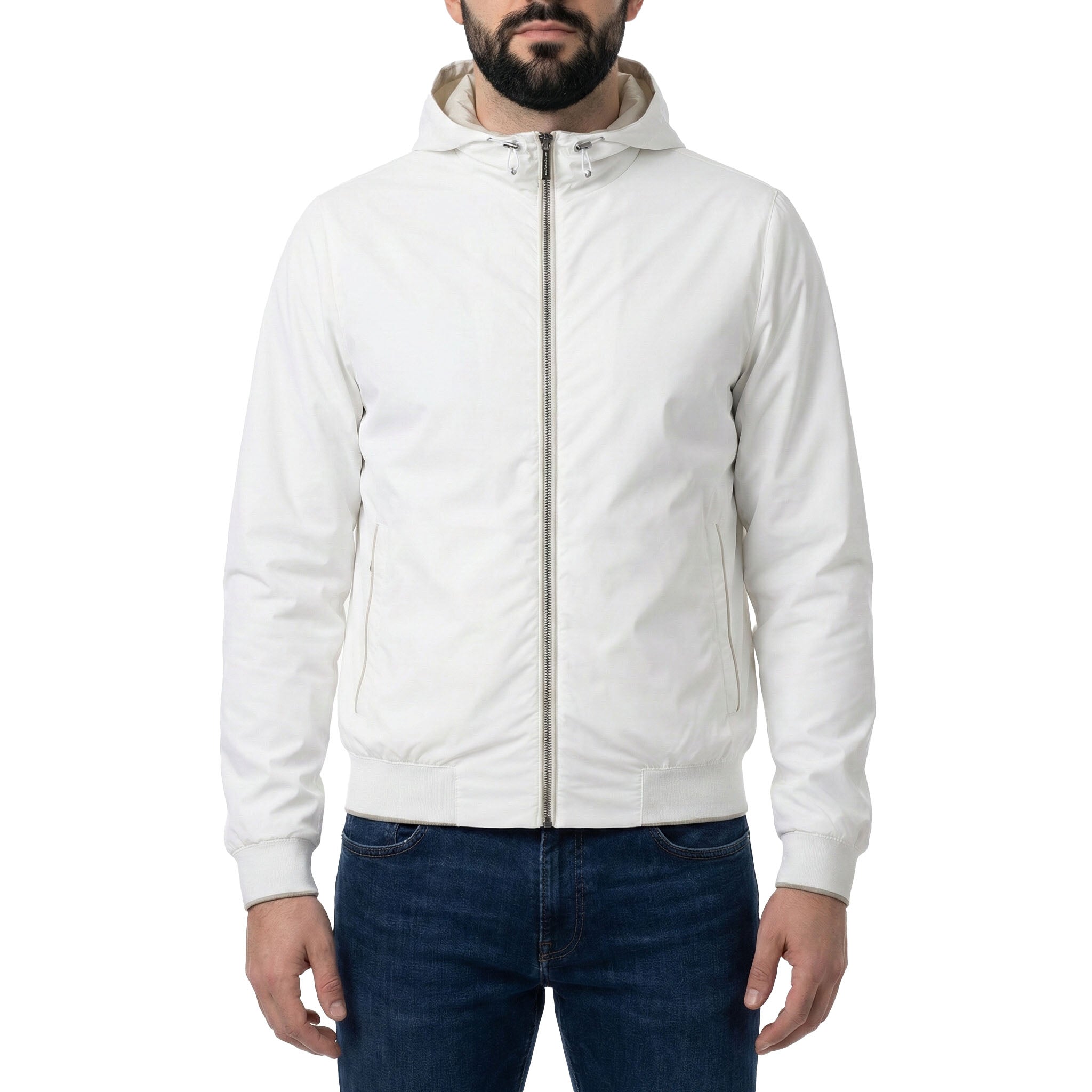 Diese Jacke in geradem Schnitt präsentiert sich als wendbarer Funktions-Hoodie. Eine Seite besteht aus wasserabweisendem Membrangewebe, die andere aus ultraleichtem, seidigem Nylon. Die verstellbare Kapuze mit Kordelzug und der Reißverschluss bieten optimalen Schutz, während Reißverschlusstaschen auf beiden Seiten praktische Details hinzufügen. Mit zweifarbigem Strick an Bündchen und Saum überzeugt das Modell durch seine Vielseitigkeit und sportlich-stilvolle Optik. Hochwertig verarbeitet und äußerst komfortabel. Hergestellt in Italien.
