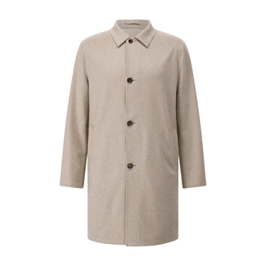 Dieser vielseitige Wendemantel aus Italien vereint zwei perfekte Welten: Auf der einen Seite weicher Kaschmir für ultimativen Komfort und Wärme, auf der anderen Seite ein wasserabweisender Stoff, der Sie bei wechselhaftem Wetter zuverlässig schützt. Der Mantel bietet nicht nur praktischen Nutzen, sondern auch ein stilvolles Design, das sich jedem Anlass anpasst. Ein wahres Allround-Talent, das höchste Qualität und italienische Handwerkskunst in sich vereint.