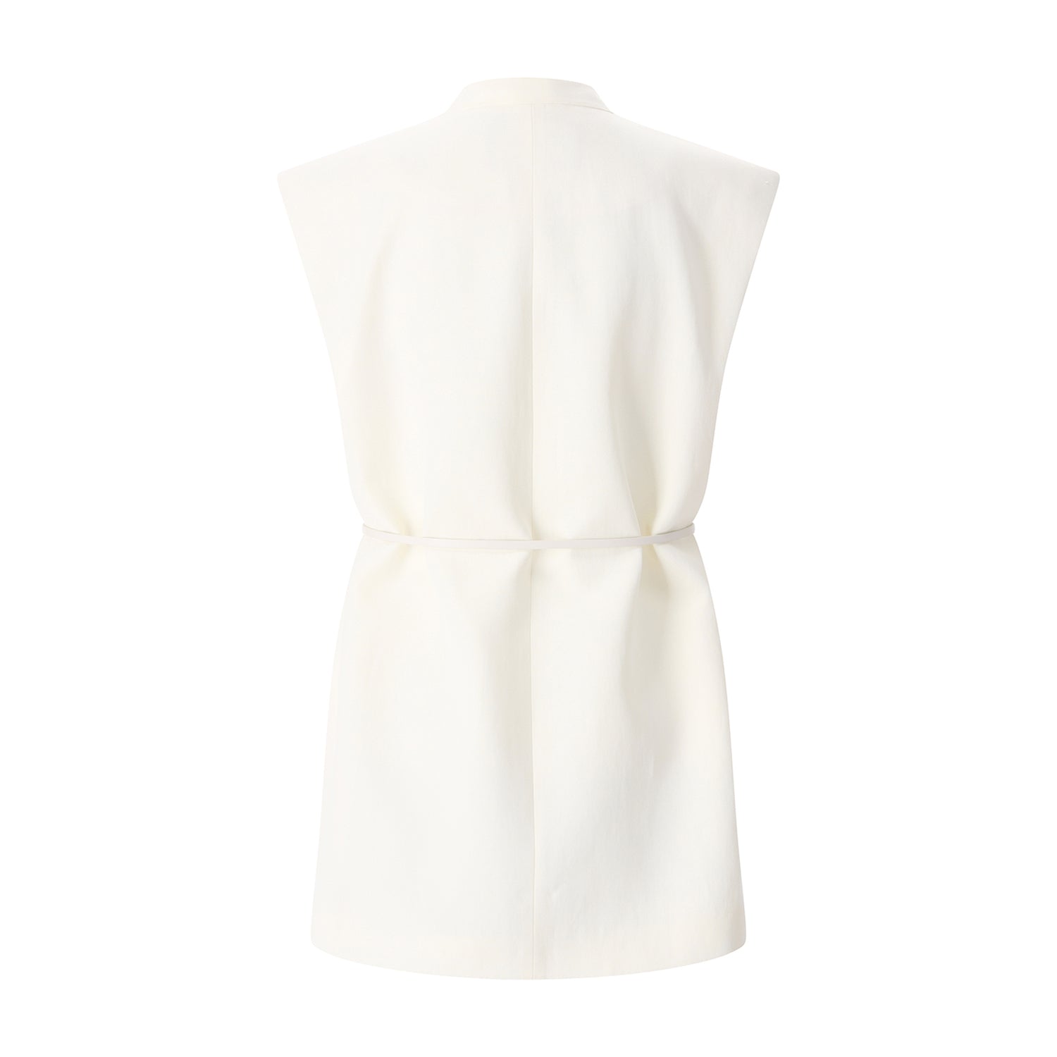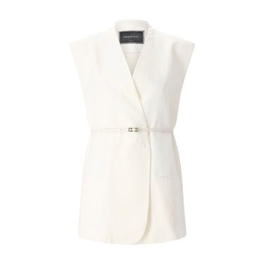 Diese moderne Longweste besticht durch ihre puristische, ärmellose Silhouette und den fließenden Fall aus einem edlen Leinen-Viskose-Mix. Gefertigt in Italien, verbindet sie handwerkliche Qualität mit sommerlicher Leichtigkeit. Der hauchdünne Gürtel setzt einen feinen Akzent in der Taille und erlaubt es Ihnen, die Weste ganz individuell zu stylen.